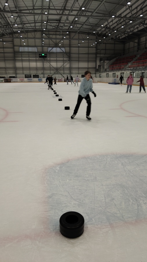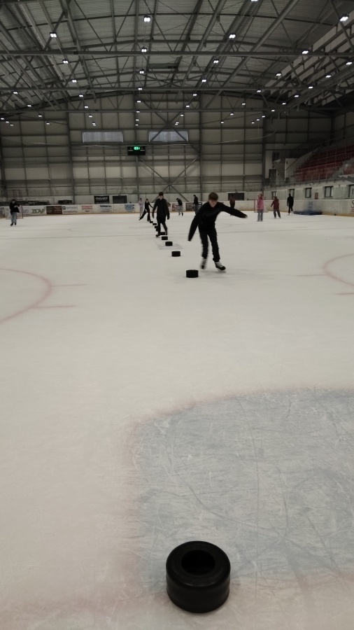 Po úvodním rozbruslení, kdy si každý našel své tempo a jistotu, jsme se pustili do různých aktivit. Vyzkoušeli jsme slalom, jízdu v „hadovi“ nebo průjezdy brankami.