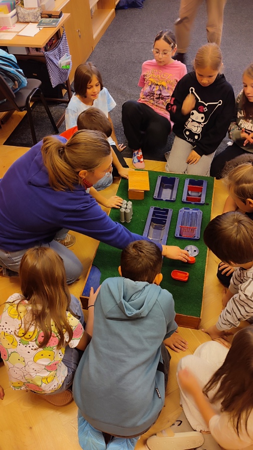 Ve městě je voda vzácným spojencem. Když ji dokážeme zadržet, ochladí rozpálené ulice, zalije zeleň, pomůže předcházet suchu a udělá naše okolí příjemnějším pro lidi i přírodu. No a když vodu použijeme, tak ji musíme nejprve vyčistit, než ji vrátíme zpět do přírody. To vše bylo tématem interkativních workshopů, kterých se zúčastnili žáci od 3. do 9. ročníku.