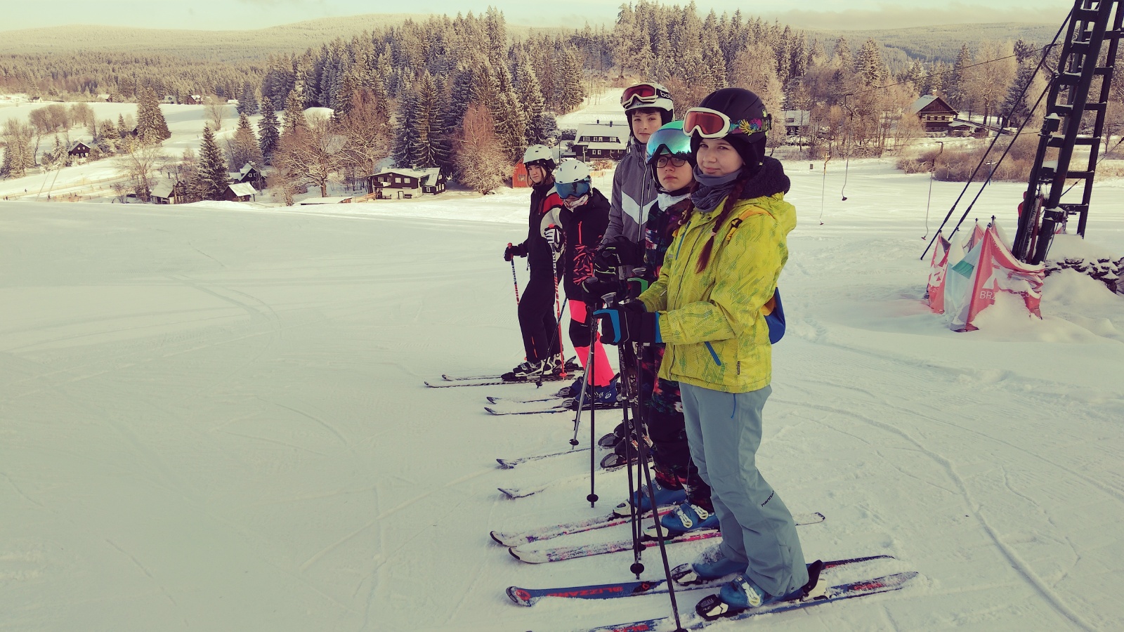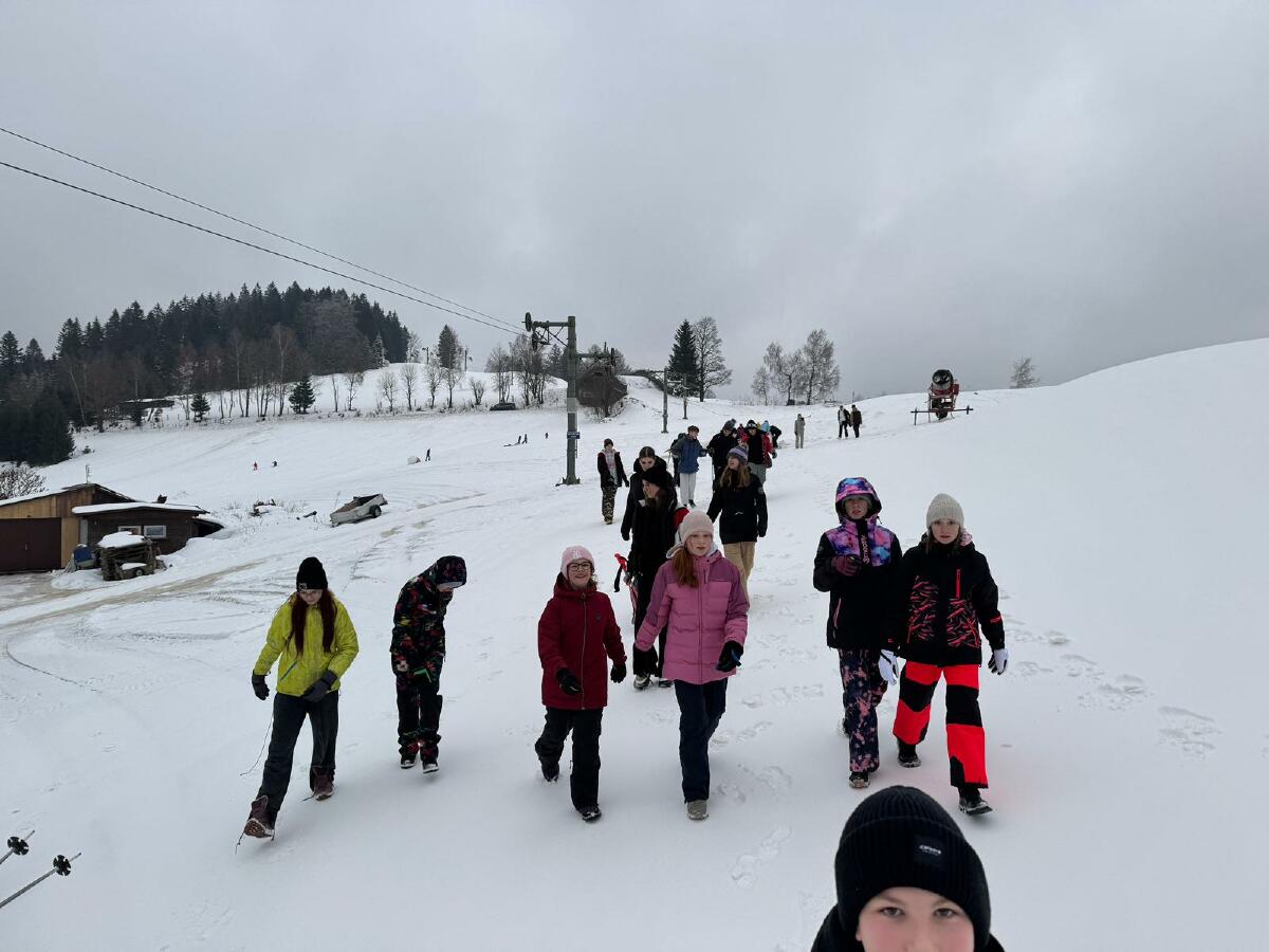 Příroda nám přála – ještě před naším příjezdem napadla vydatná vrstva sněhu, což jsme si hned první den užili procházkou v zimní krajině. Následující den byli žáci rozděleni do tří družstev podle úrovně lyžařských dovedností. Již po prvním dni mohli nelyžaři s radostí konstatovat, že zvládli základní techniky lyžování a bezpečně sjeli svůj první svah.