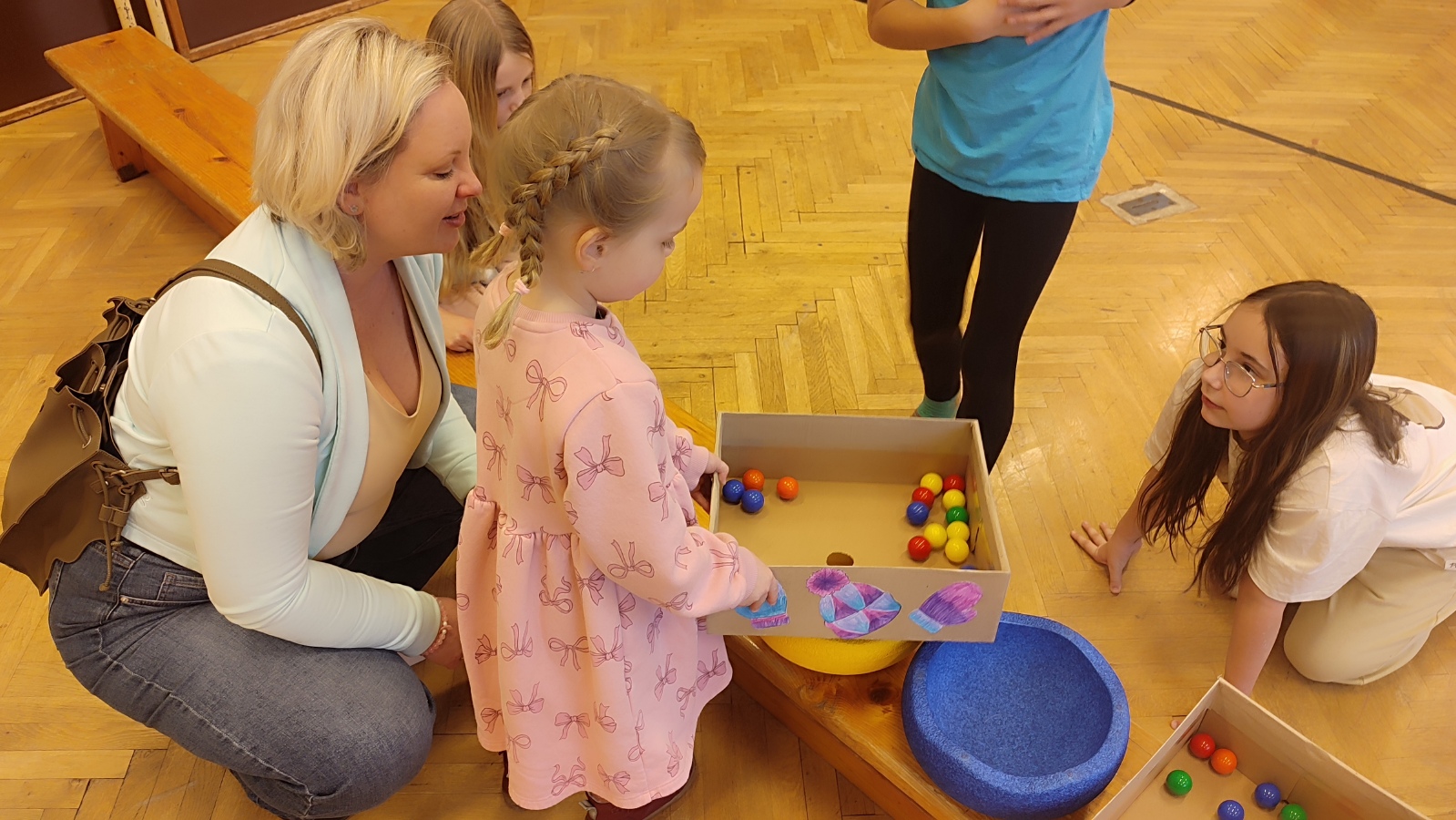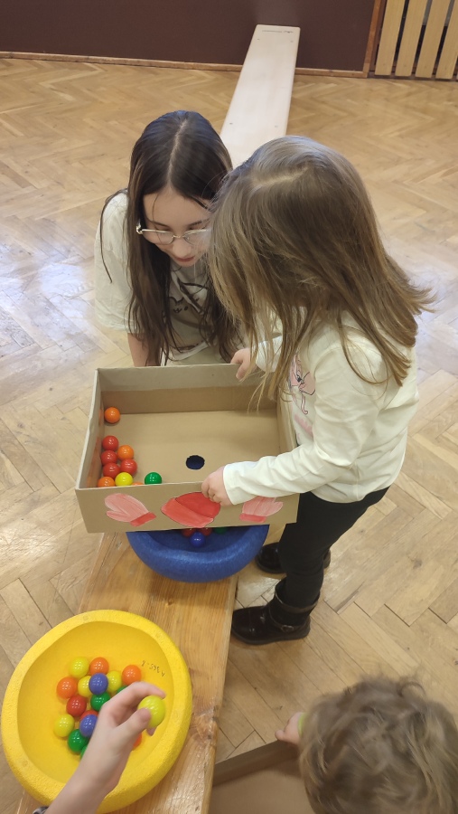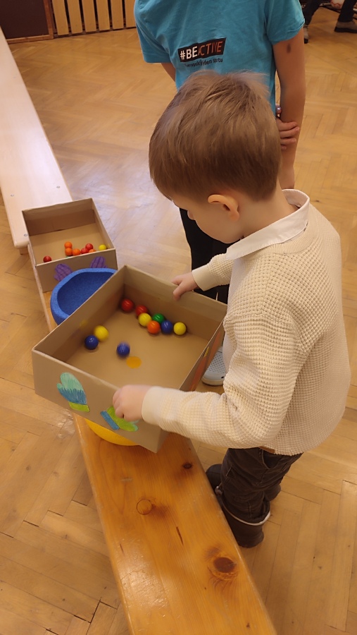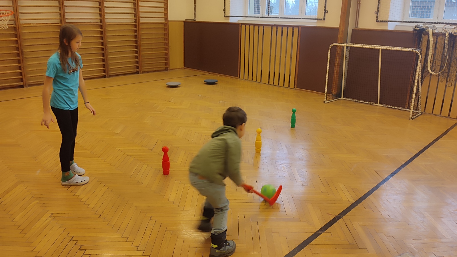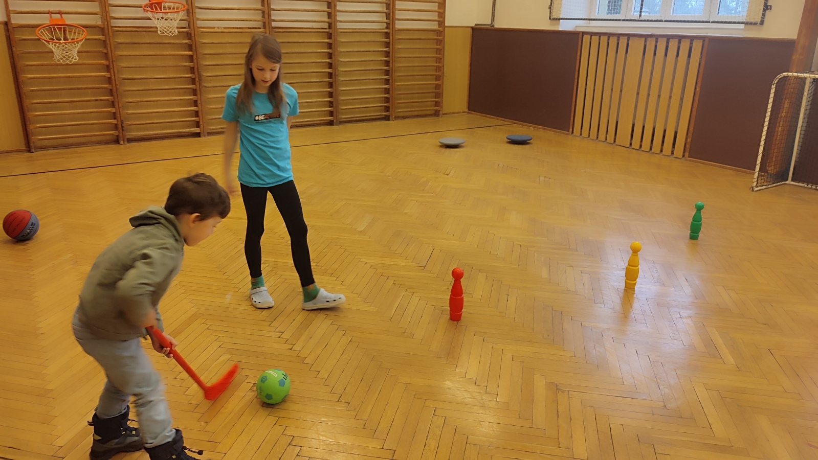 - malá tělocvična - pohybové aktivity (Děti si zahrály pozemní hokej nebo se trefovaly na daný cíl, ale vše pěkně v teple a suchu.)