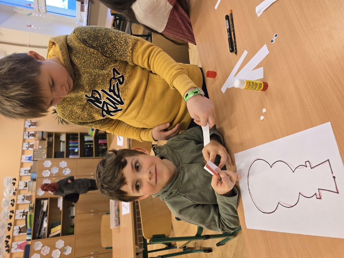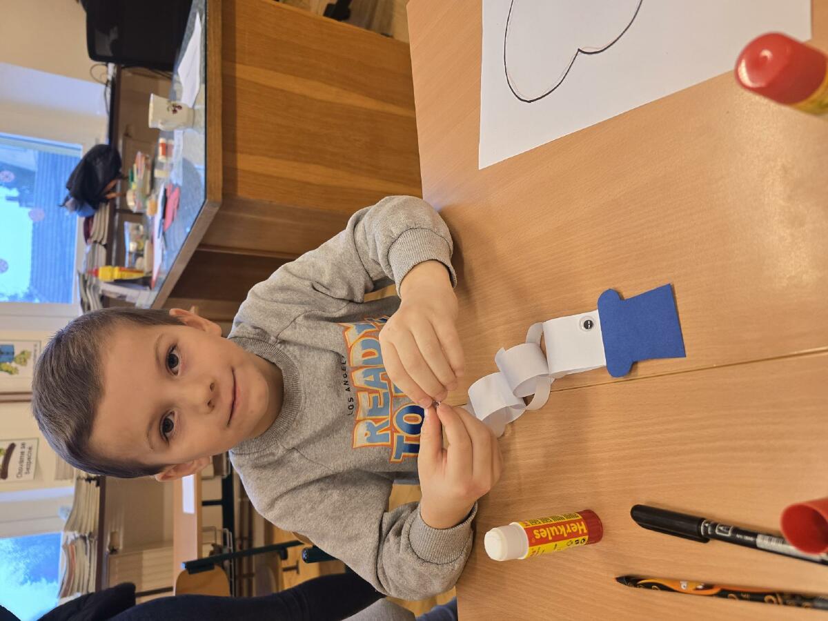 - 3. třída - Děti si v této třídě vyrobily jednoduchého sněhuláka z proužků papíru.
