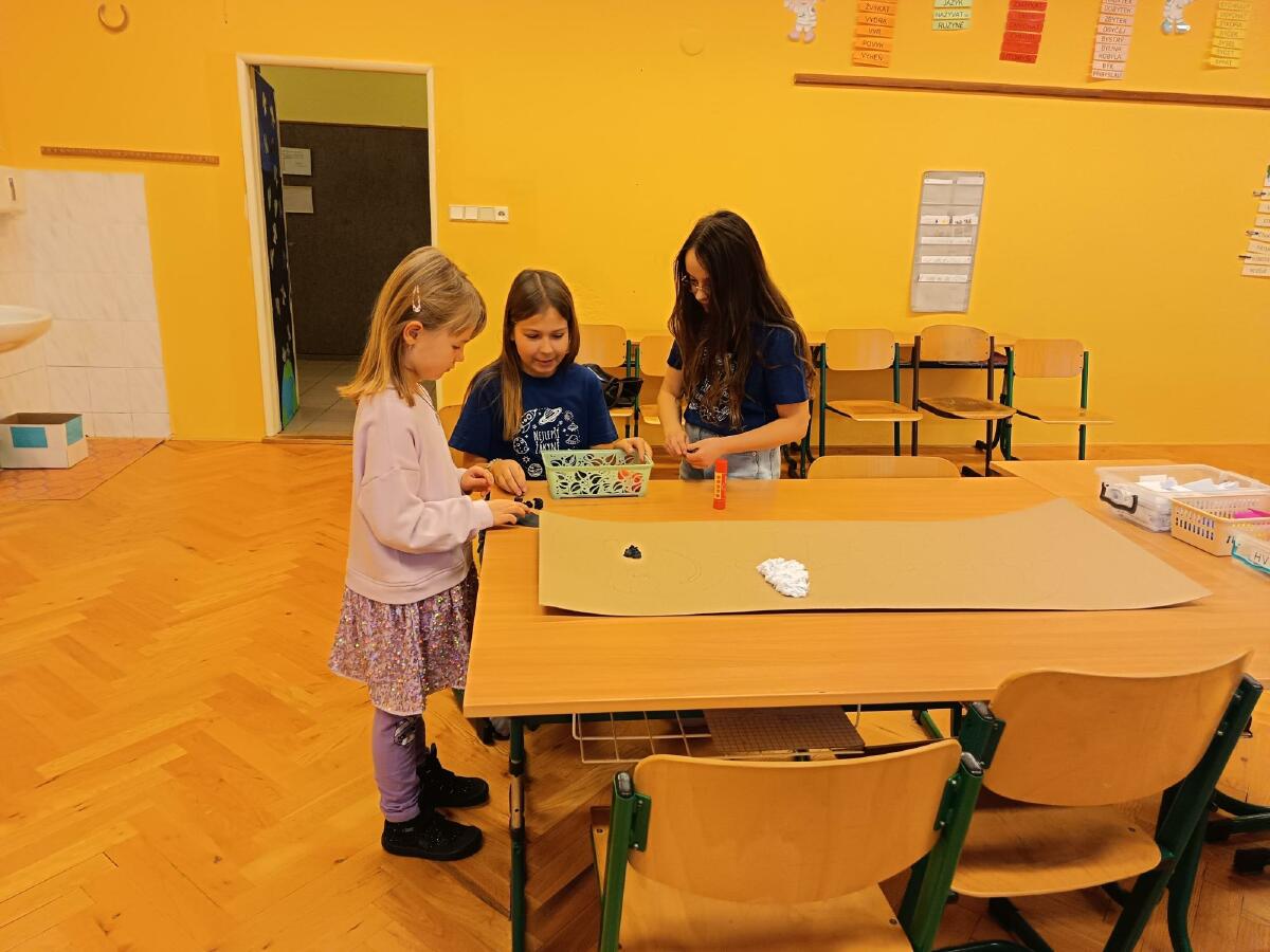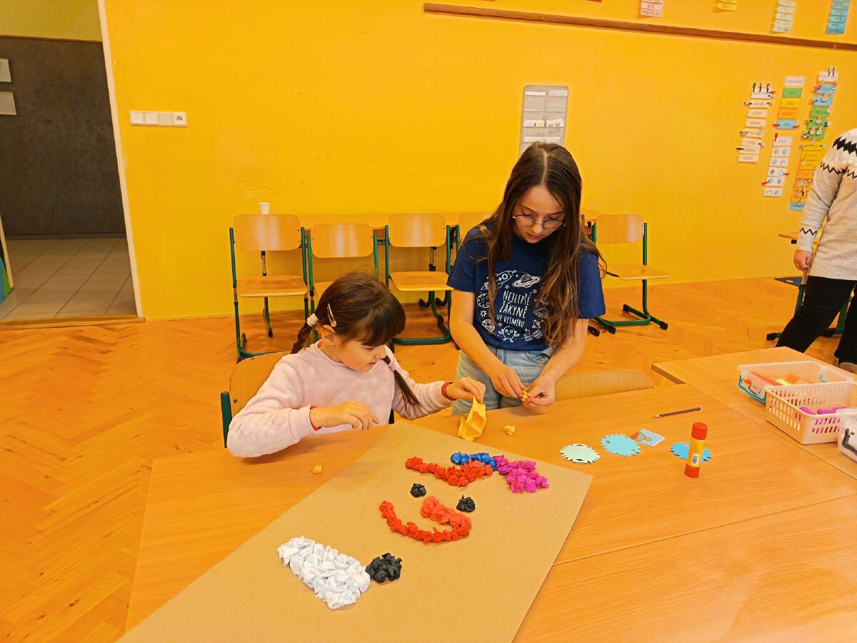 U většiny aktivit pomáhali žáci ZŠ, neboť dle našich zkušeností v jejich přítomnosti předškoláčci ztrácejí určitou část ostychu a poté se ochotněji zapojují do nabízených aktivit.