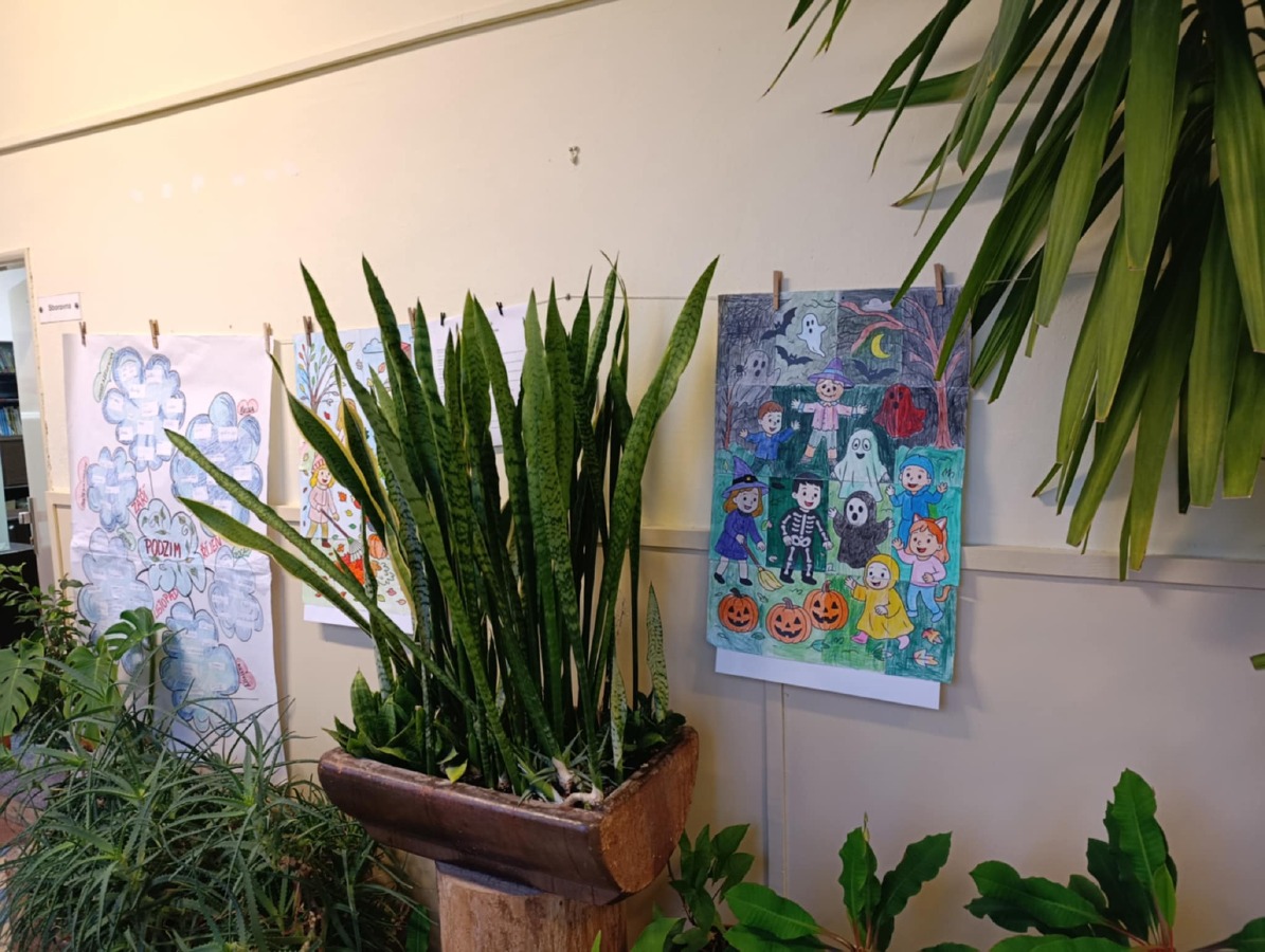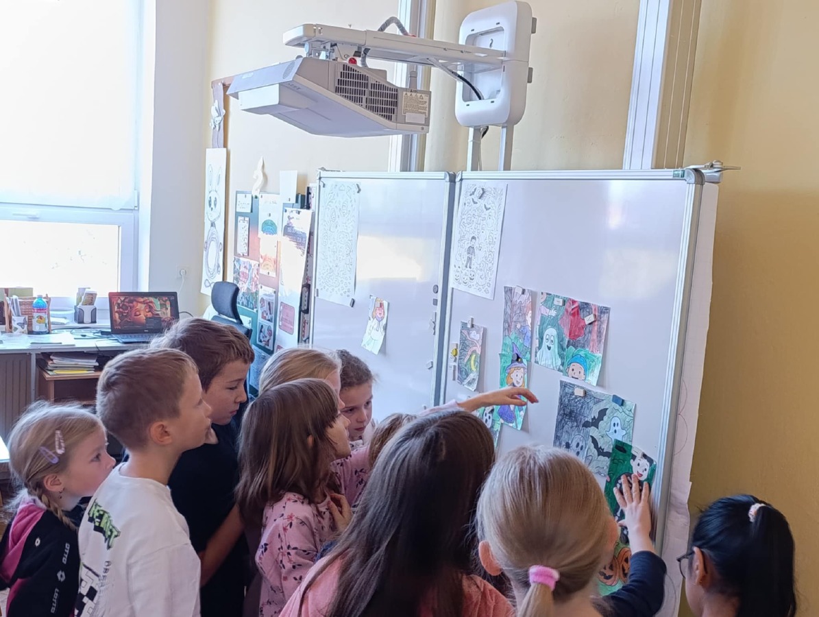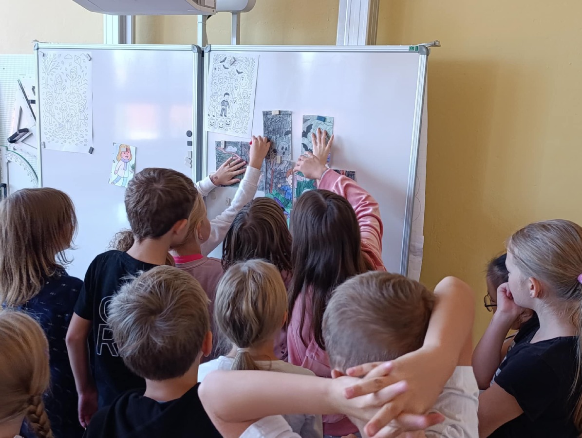 Naše velká myšlenková mapa i obrázky jsou vystavené na společné chodbě