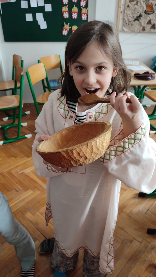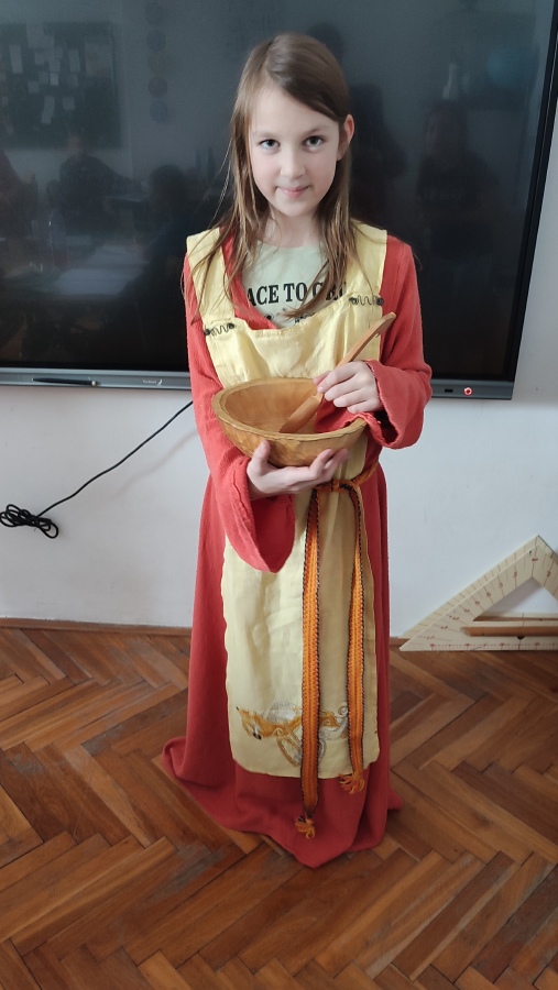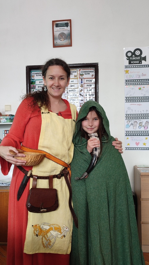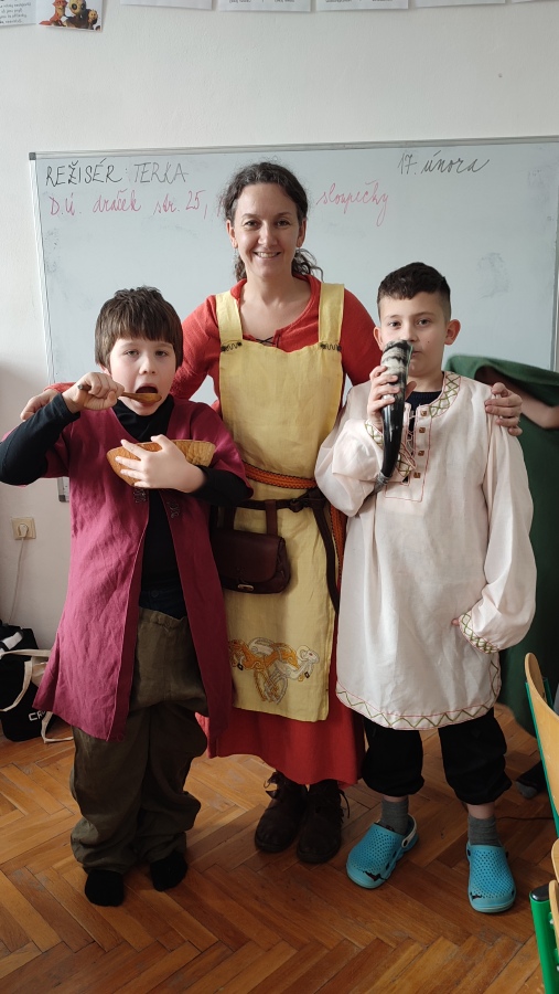Úterní vlastivěda byla tentokrát s překvapením. Do výuky přišla keltská žena a vyprávěla o tom, jak její kmen slaví slavnost zimního slunovratu.Také jsme zkoumali dobové oblečení, materiál, způsob šití, ruční výrobu kožených bot včetně kožených knoflíků, kování přezky pásku, kovaný náramek, sponu do vlasů z kůže, roh hojnosti na pití, výrobu dřevěného nádobí a vůbec způsob života. Dozvěděli jsme se spoustu informací o řemeslech a tehdejším obchodování s římskou říší.