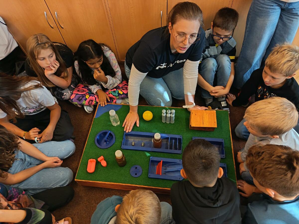V rámci programu Cesta vody jsme se seznamovali se spotřebou vody v běžné domácnosti. Přemýšleli jsme nad tím, jak bychom mohli vodou šetřit. Na modelu jsme si ukázali, jak funguje čistička odpadních vod. V závěru programu jsme sestavovali vodovodní a odpadní potrubí.