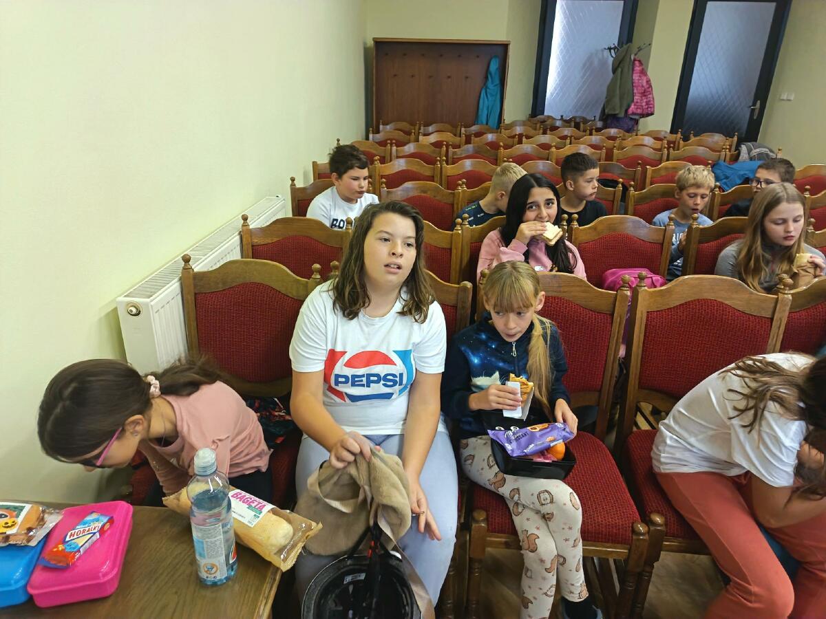 I přes nepříznivé počasí se dopravní výchova ve Zruči nad Sázavou uskutečnila. Po teoretické části, která probíhala na městském úřadě, jsme se přesunuli na dopravní a dětské hřiště. Tam na nás čekala jizdní kola a dopravní značky. Celou dopravní výchovou nás provázeli dva strážníci městské policie. V závěru dne nám odměnou byla šlapací autíčka a návštěva cukrárny.