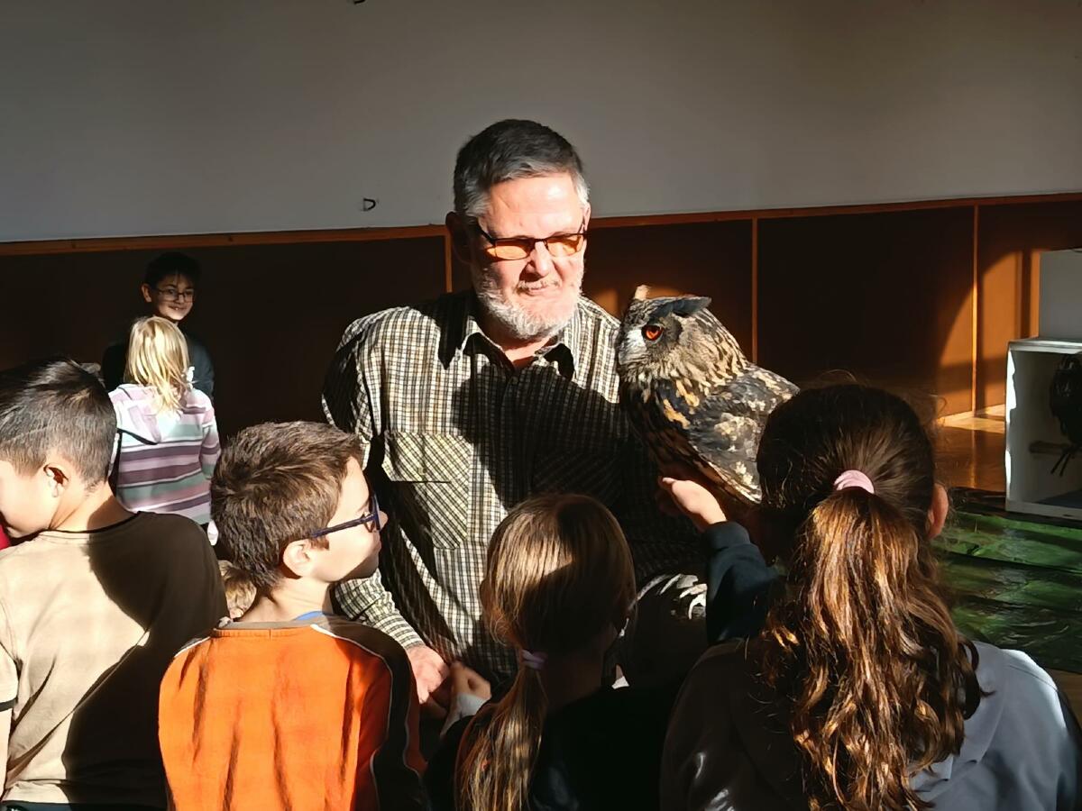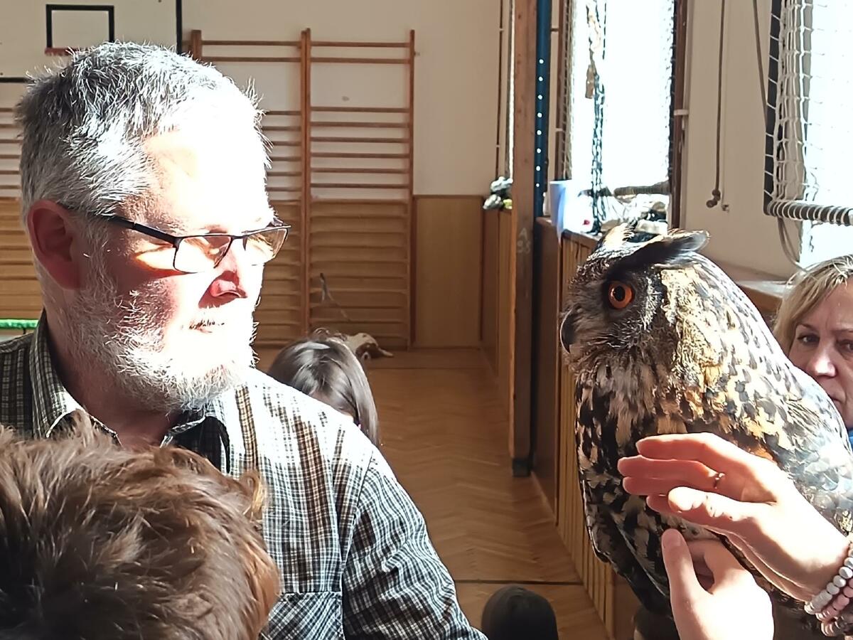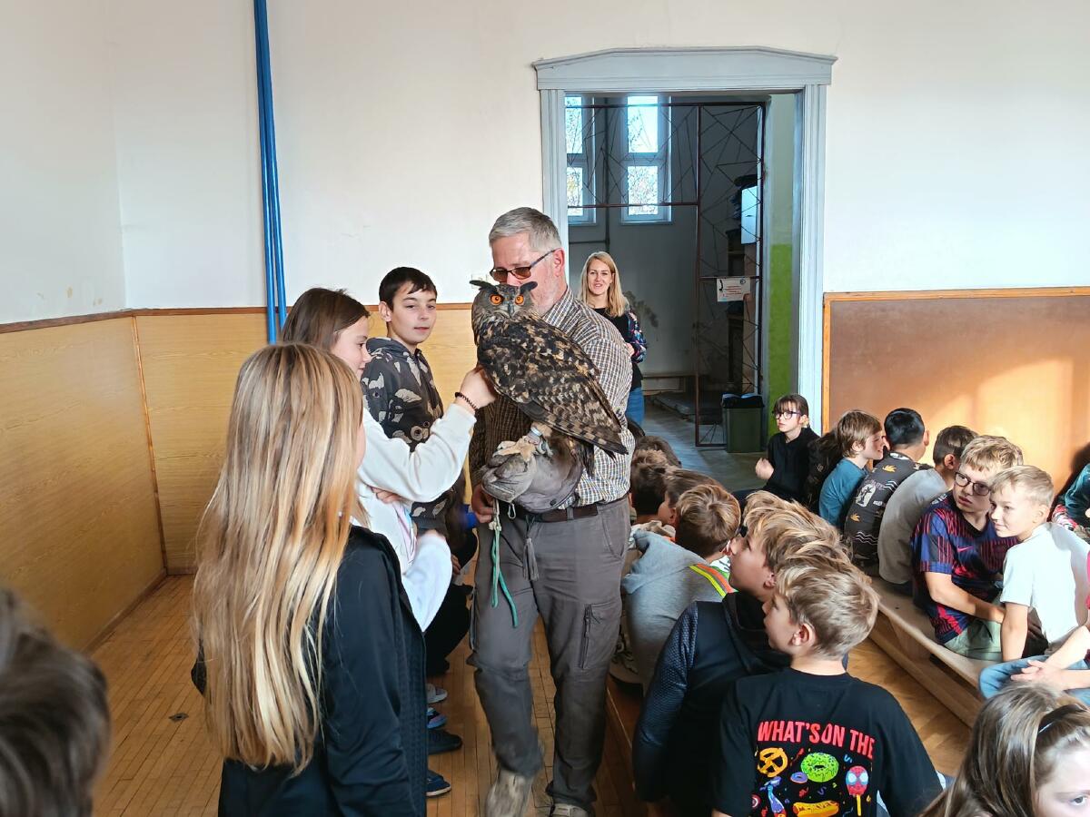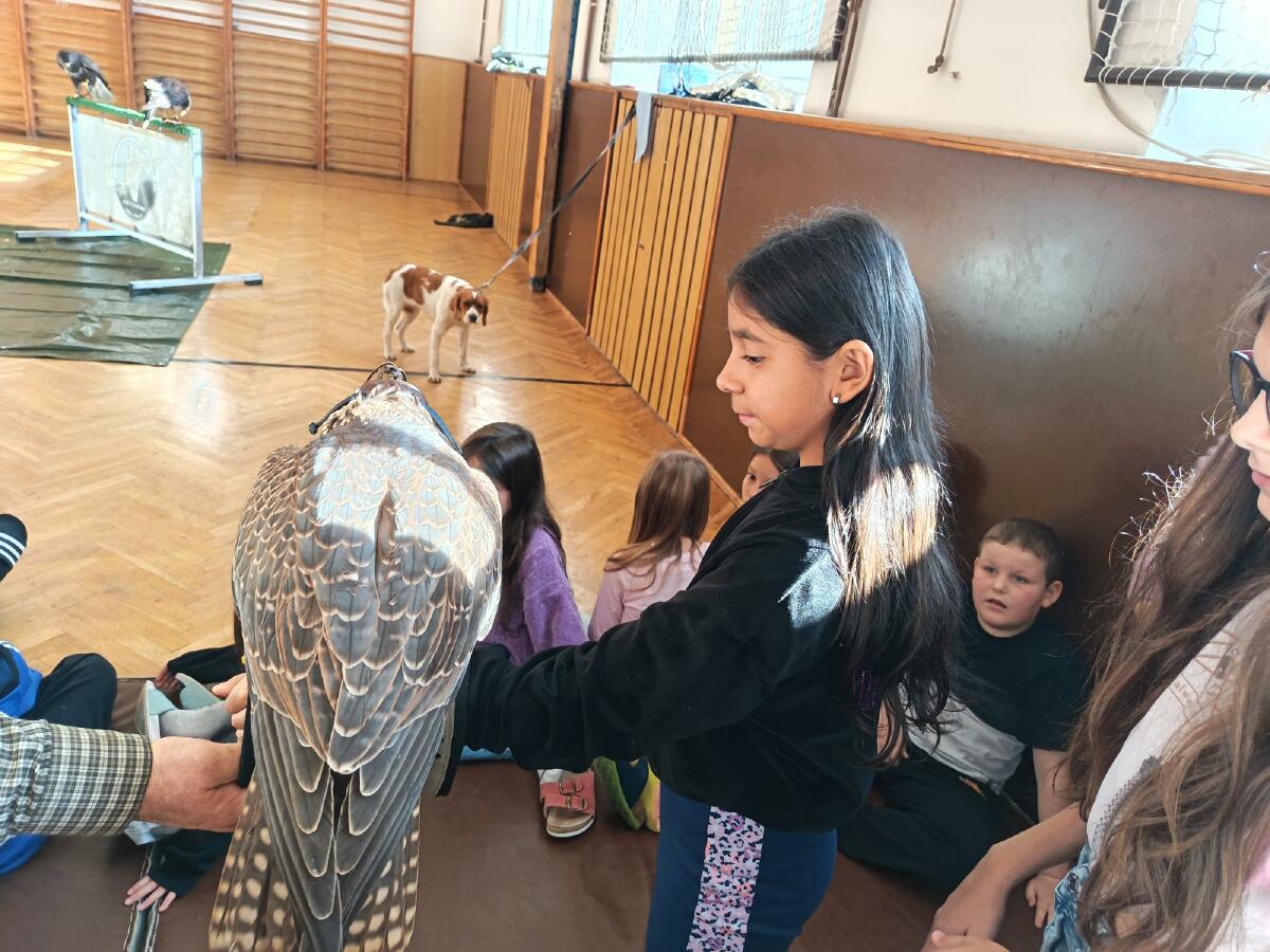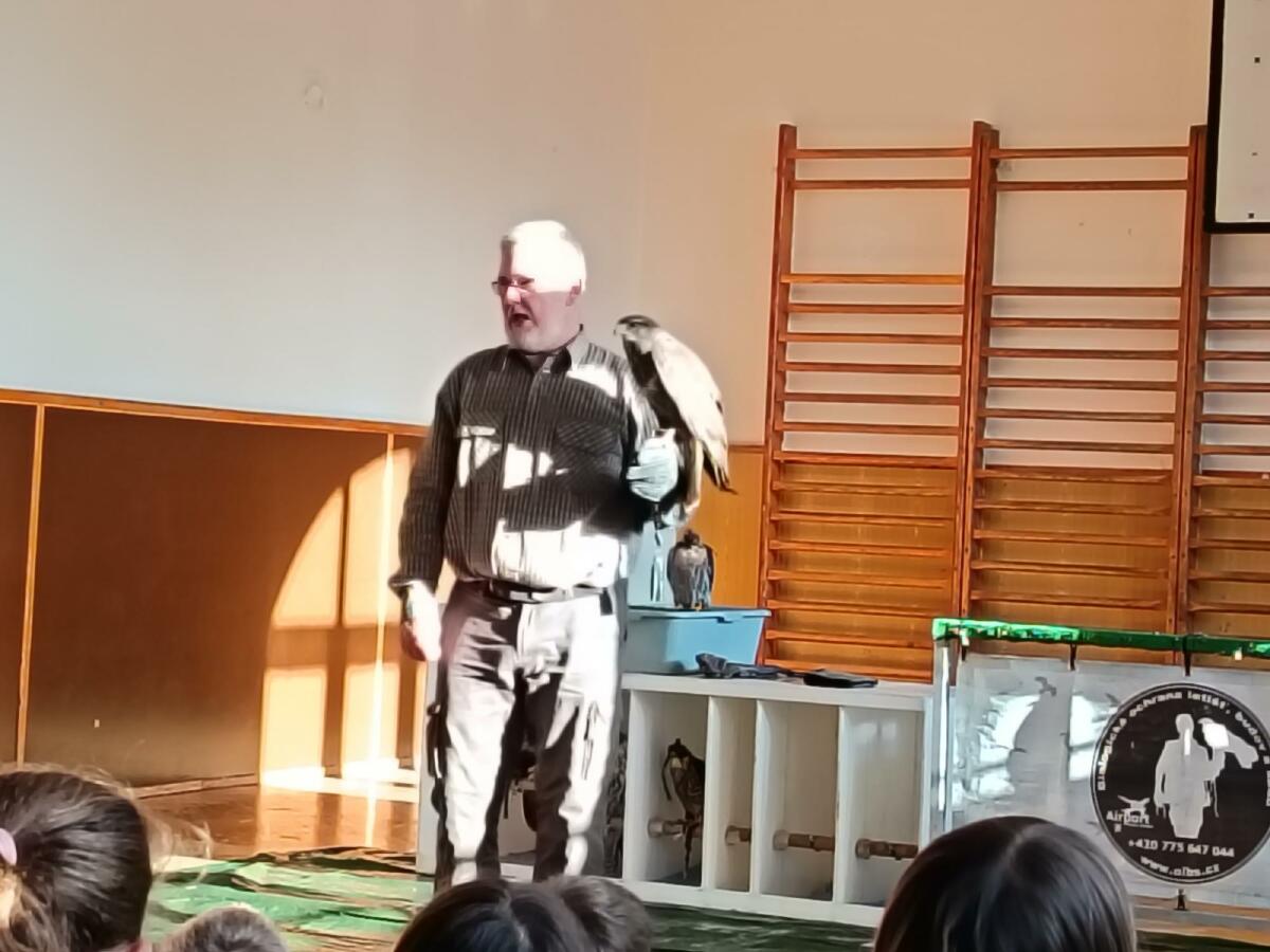 Programy se zvířaty mají vždy u žáků velký úspěch. Proto ani tento program nezklamal. Zájemci si mohli dravce vzít na ruku a pohladit si všemu přihlížející fenku.