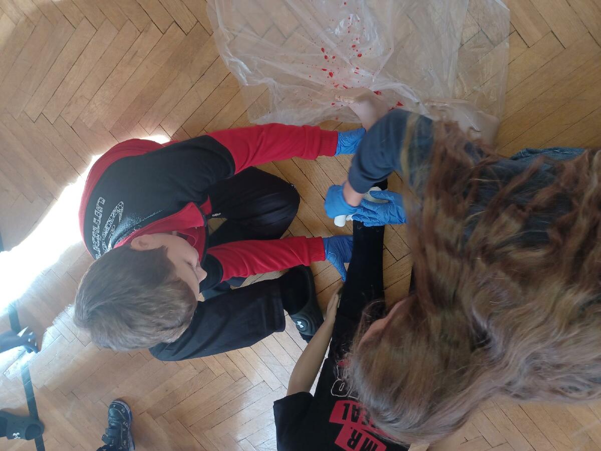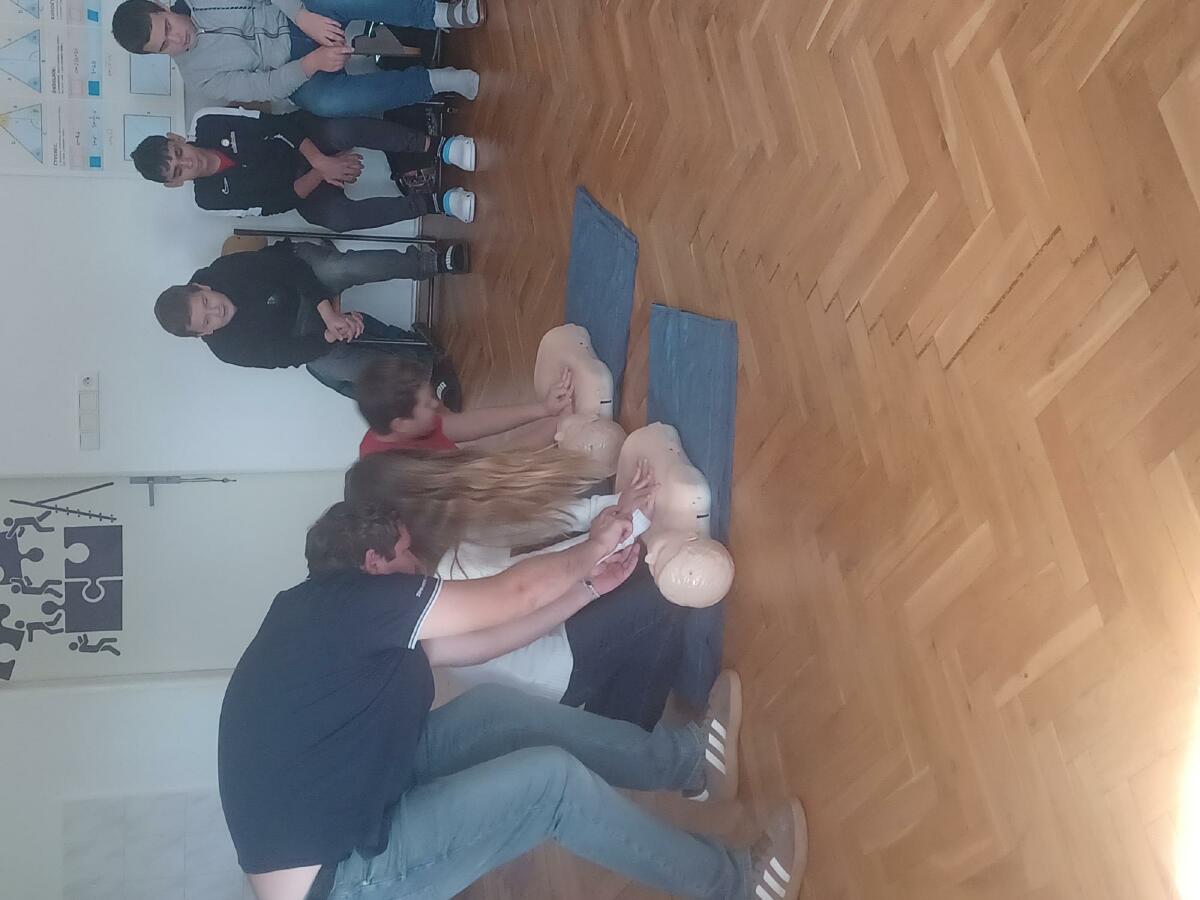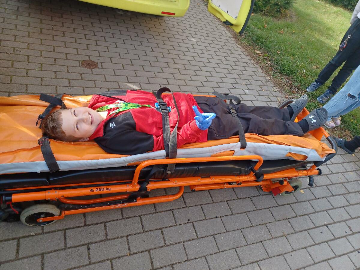 V první části jsme se věnovali teorii – dozvěděli jsme se, jak volat na tísňovou linku, jak poskytnout první pomoc a co dělat, když se někdo ocitne v ohrožení života, procvičili jsme si také základy resuscitace. Ve druhé části, která byla více praktická, jsme si prohlédli sanitku, její vybavení a vyzkoušeli, jak volat na linku první pomoci a jak ošetřit otevřenou zlomeninu.