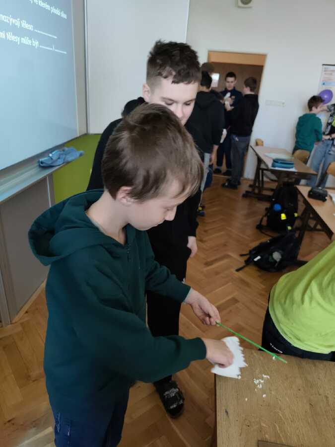 Jak vypadají některé naše vyučovací hodiny? Rozhodně tu jen nesedíme a neposloucháme výklad. Naopak - sami si aktivně spoustu věcí zkoušíme, pod vedením vyučujících objevujeme nové souvislosti a také smysluplně pracujeme s moderními technologiemi. Podívejte se na pár fotek z hodin fyziky a dějepisu.