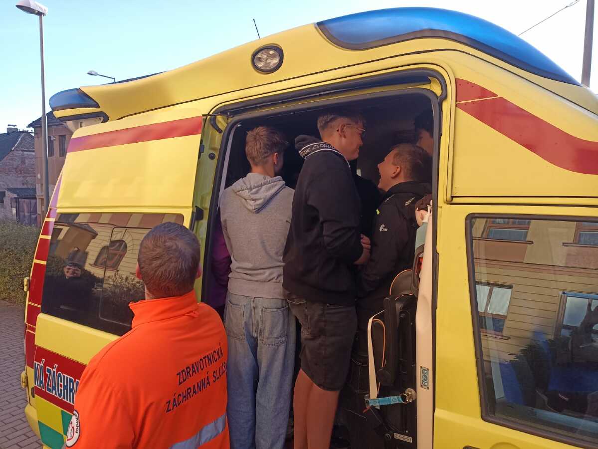 První pomoc - záchrana lidského života a pokus - kolik se nás vleze do sanitky? (odpověď u fota)