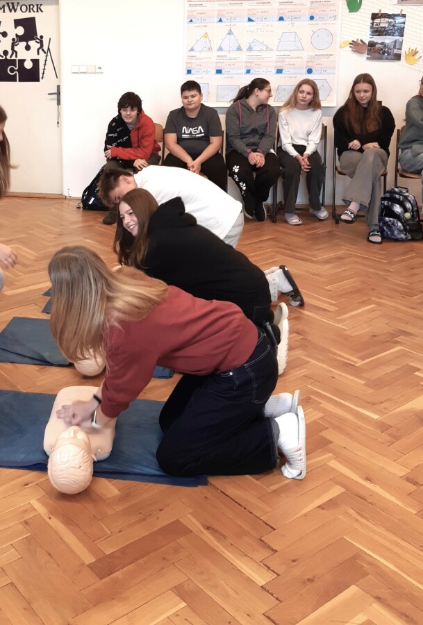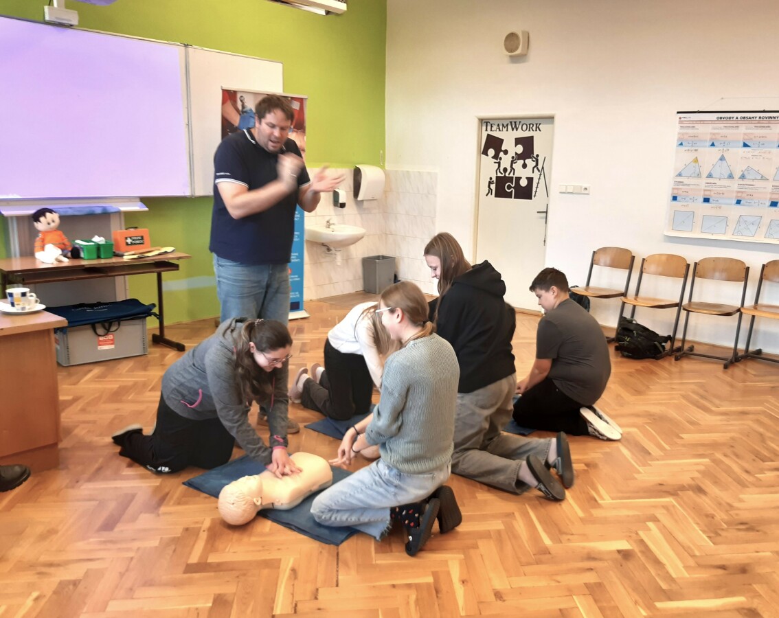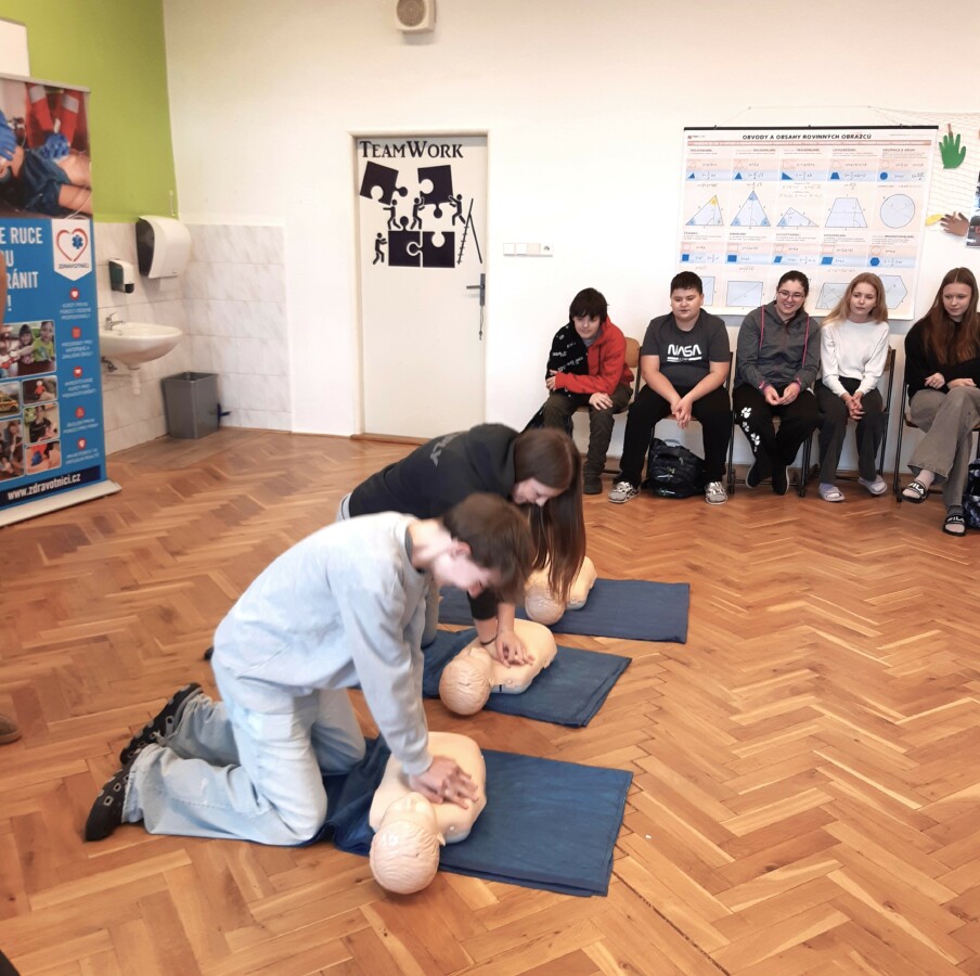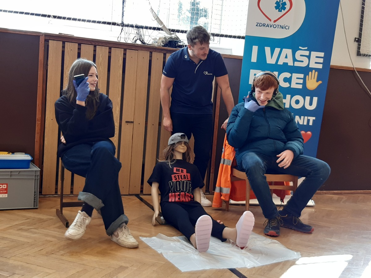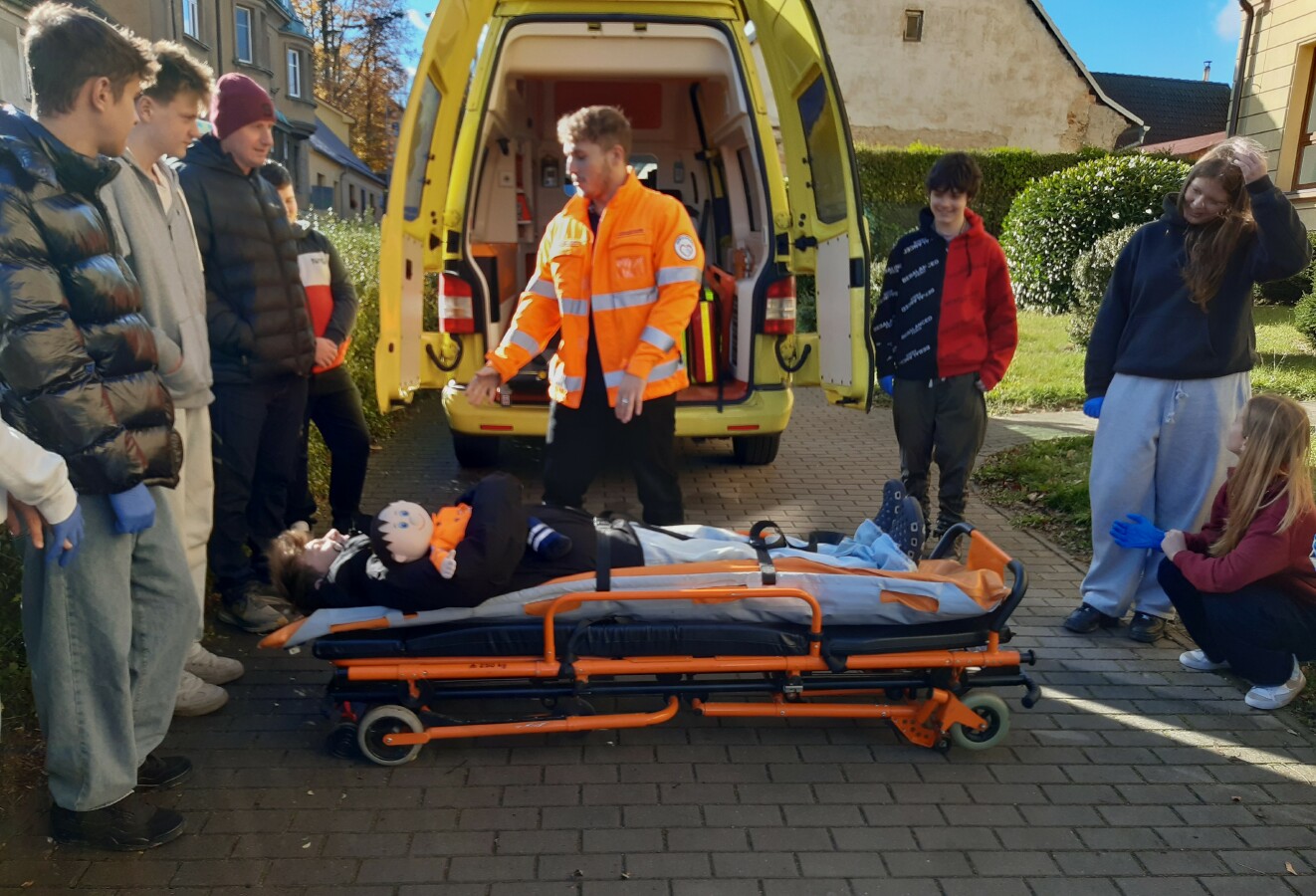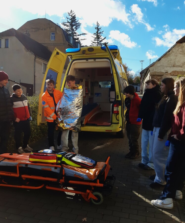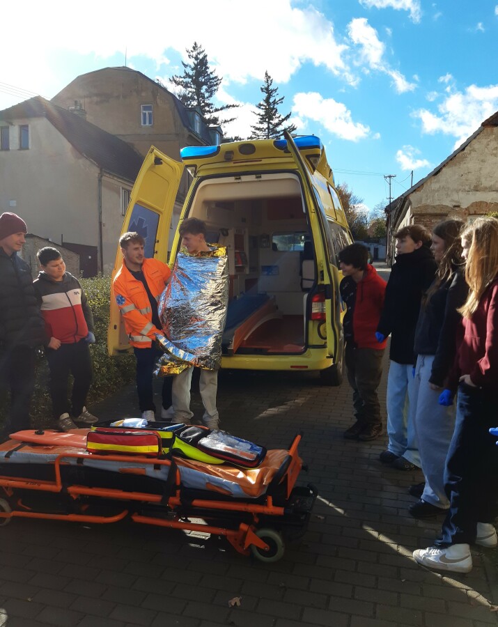 Naši žáci se zúčastnili dvouhodinového vzdělávacího programu Mladý záchranář. První hodina byla věnována teorii – dozvěděli se, jak správně reagovat v krizových situacích, jak přivolat pomoc a jak poskytnout první pomoc. Ve druhé části si své znalosti ověřili v praxi přímo u sanitky, kde si mohli vyzkoušet základní záchranářské úkony.