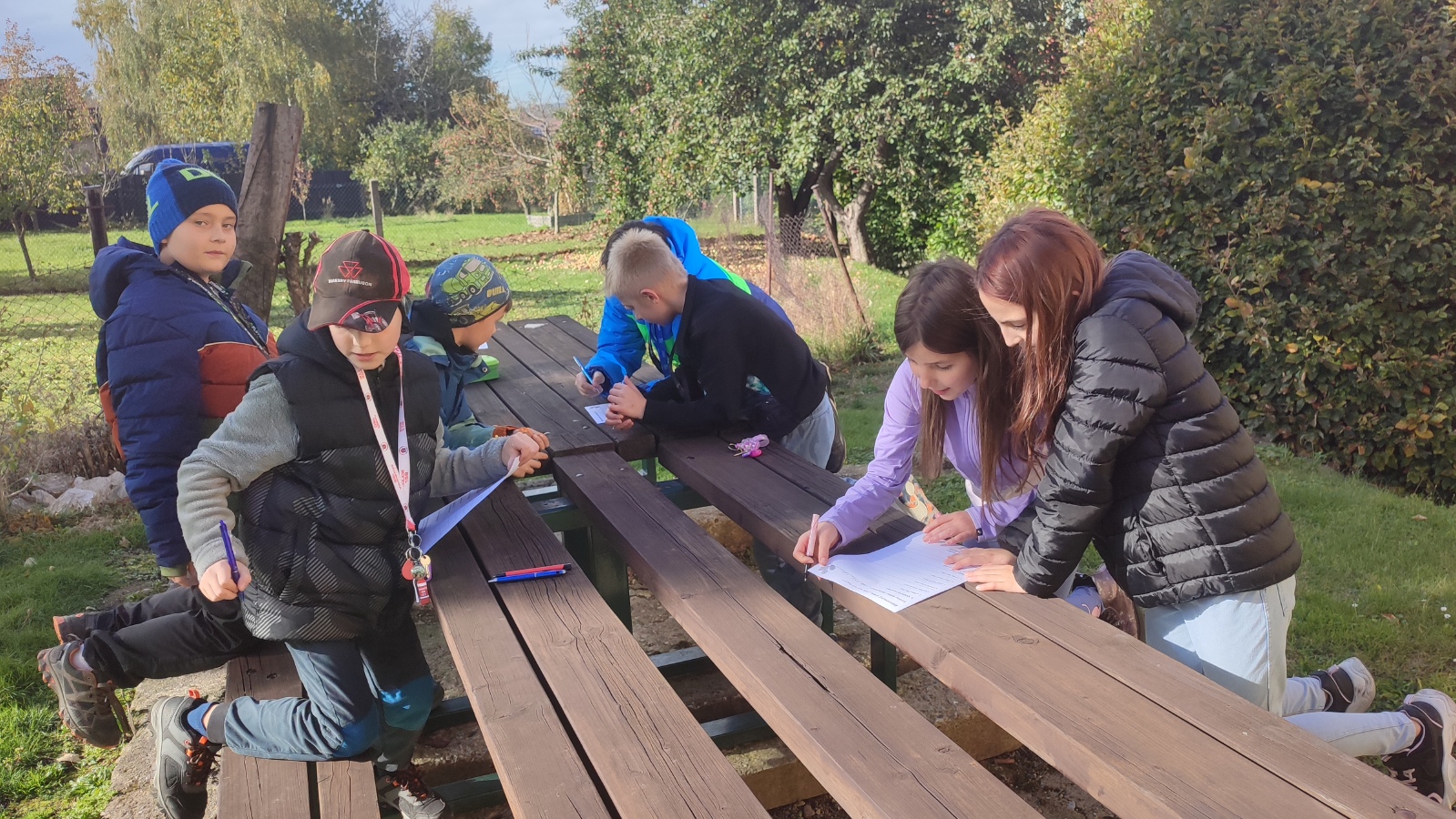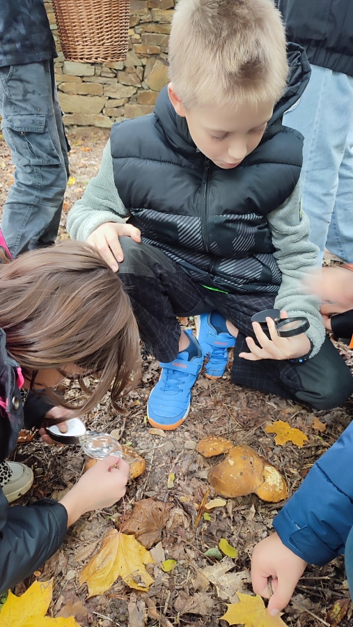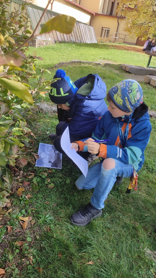 Úvodní setkání jsme věnovali seznamování a hraní přírodovědných her. Na začátku října nás vytáhlo sluníčko ven a my jsme vyrazili prozkoumat houby v okolí školy. Úlovek byl parádní. V polovině října jsme se vydali na školní zahradu a vyřešili jsme záhadu mizejícího listí. Děti v rolích detektivů vyslýchaly svědky, pátraly po stopách a důkazech a nakonec vyřešily podzimní záhadu. K tomu jsme ještě na školní zahradě nasbírali jablka na vynikající křížaly.