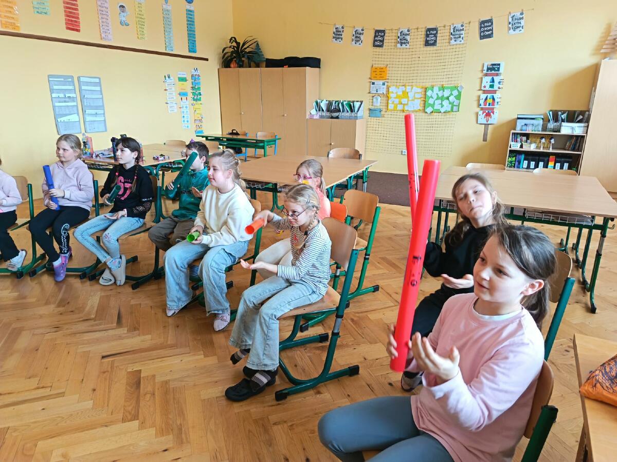 Kroužek není jen o zpěvu. Společně si hrajeme hudební hry, rytmizujeme na tělo, zkoušíme různé hudební nástroje a často se smějeme u her, které mají vlastní „jazyk“, třeba při popěvku Toemba kánon nebo říkance Ram-se-se. Oblíbená je také hra Já mám, kdo má s hudebními nástroji nebo hraní na barevné boomwhackers.