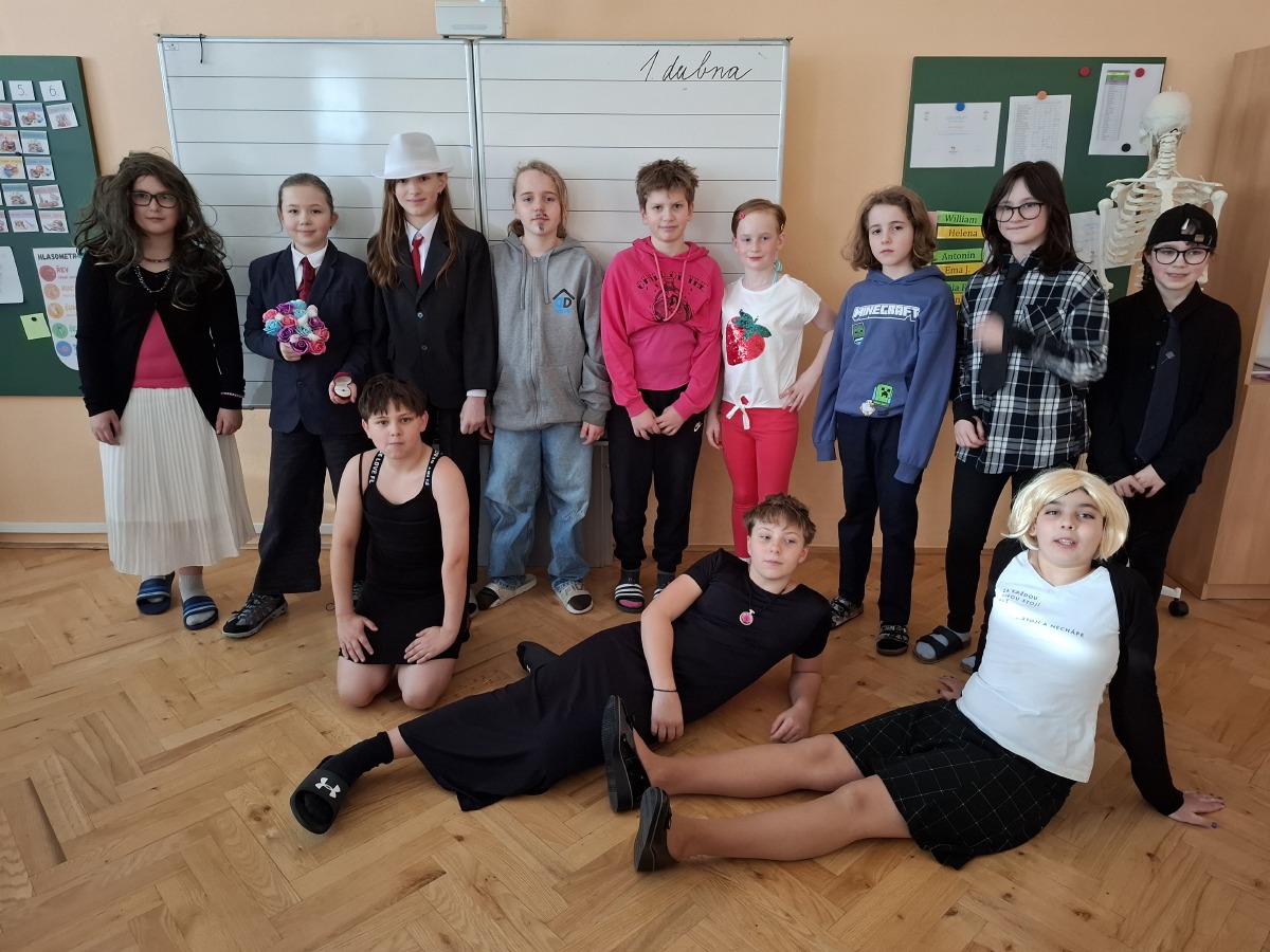 Dnešní den se na naší škole nesl v duchu dobré nálady, barev a hlavně velké dávky kreativity. Rozhodli jsme se ho oslavit trochu netradičně – tematickým „převlékacím“ dnem.
