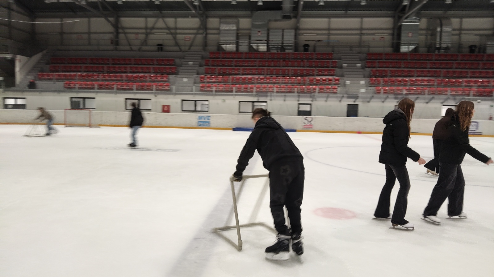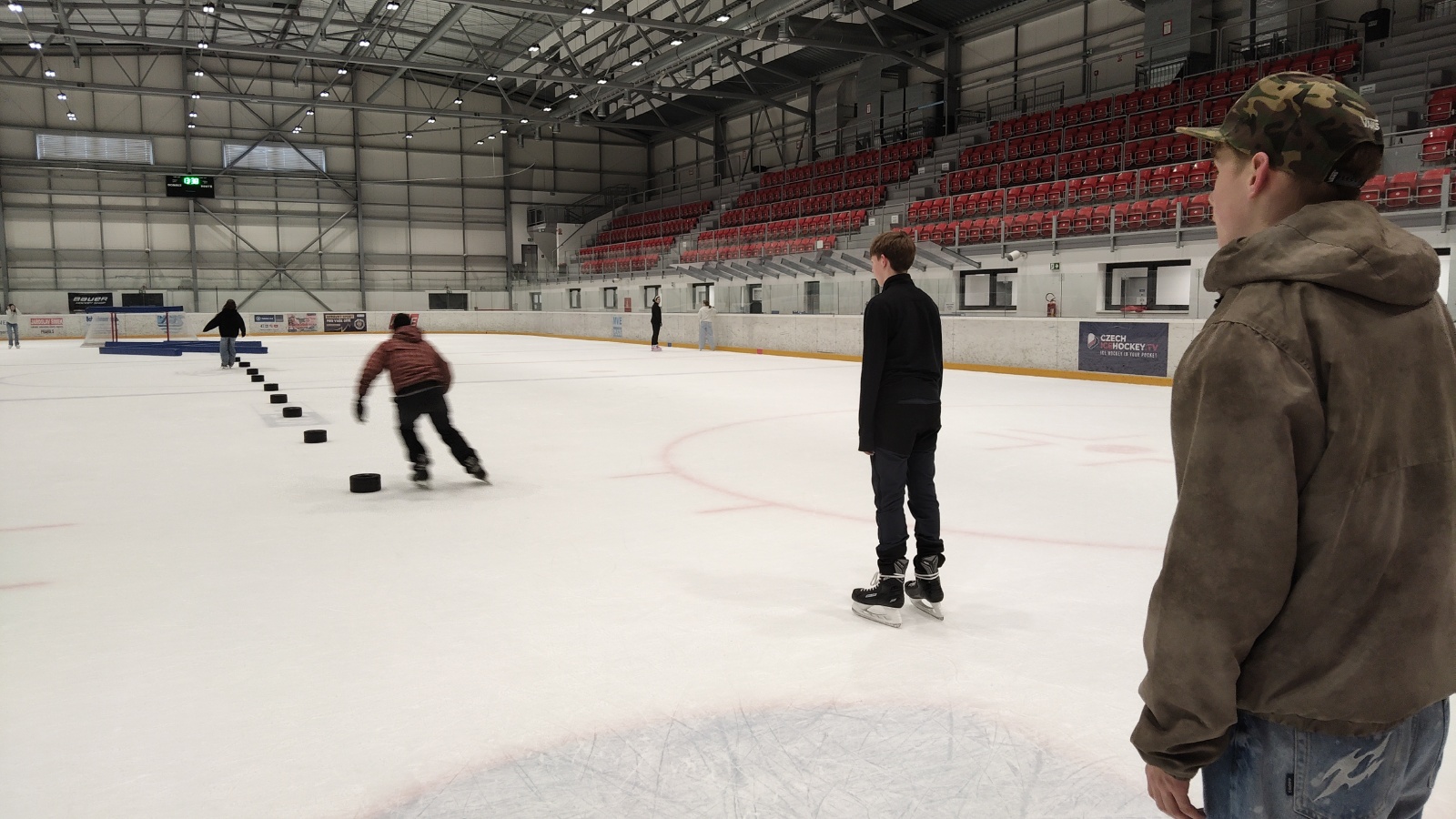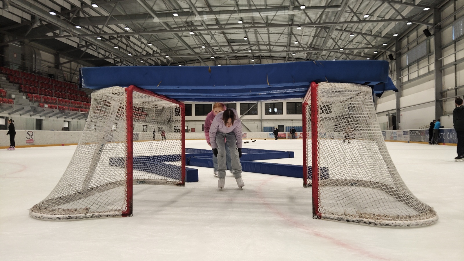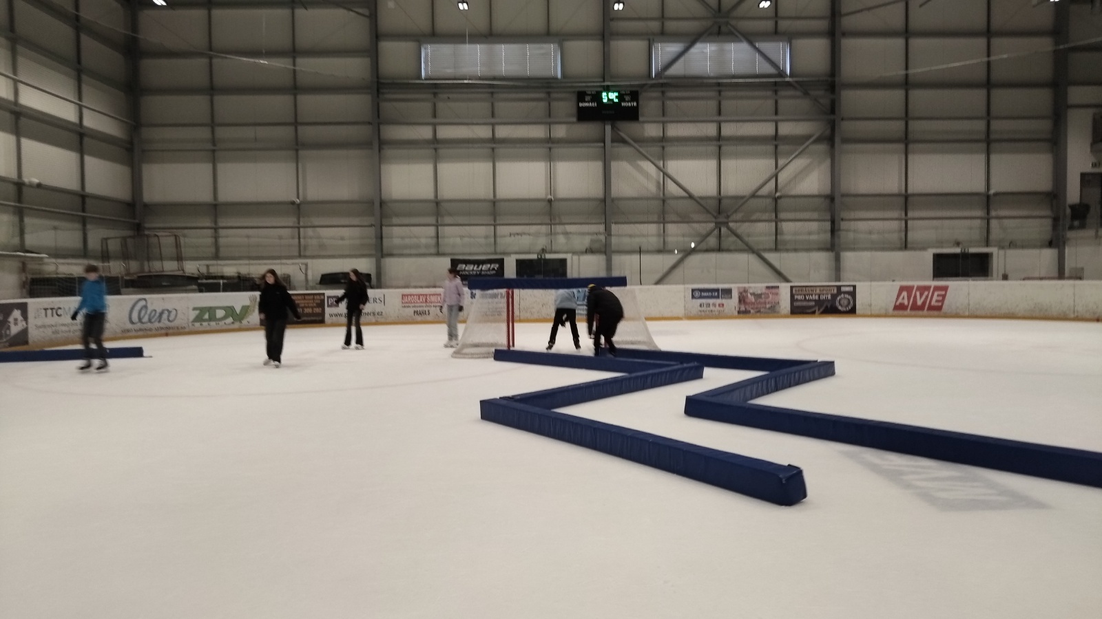 Po úvodním rozbruslení, kdy si každý našel své tempo a jistotu, jsme se pustili do různých aktivit. Vyzkoušeli jsme slalom, jízdu v „hadovi“ nebo průjezdy brankami.