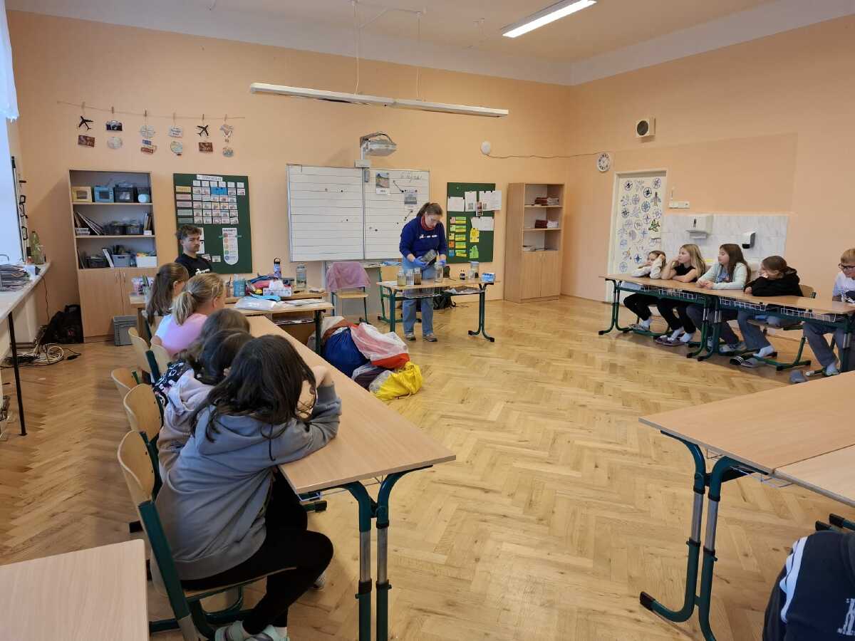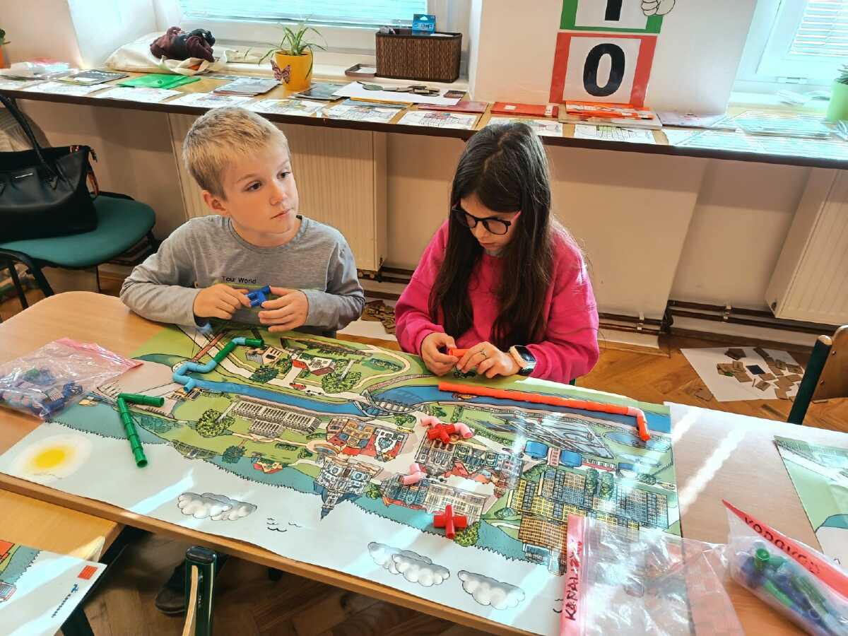 Ve městě je voda vzácným spojencem. Když ji dokážeme zadržet, ochladí rozpálené ulice, zalije zeleň, pomůže předcházet suchu a udělá naše okolí příjemnějším pro lidi i přírodu. No a když vodu použijeme, tak ji musíme nejprve vyčistit, než ji vrátíme zpět do přírody. To vše bylo tématem interkativních workshopů, kterých se zúčastnili žáci od 3. do 9. ročníku.