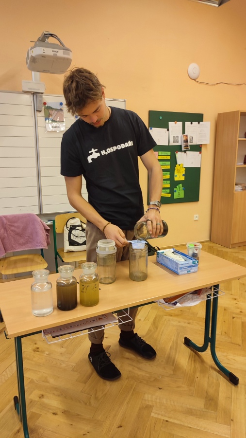 Workshopy vedli lektoři z organizace H2Ospodař. Postupně jsme čerpali vodu z vodních zdrojů, zjistili jsme, jak se vyrábí pitná voda, kudy se k nám dopravuje, na co vše ji potřebujeme, kolik vody vlastně každý den spotřebujeme, jak probíhá čištění v čistírně odpadních vod nebo co znamenají pojmy vodné a stočné.