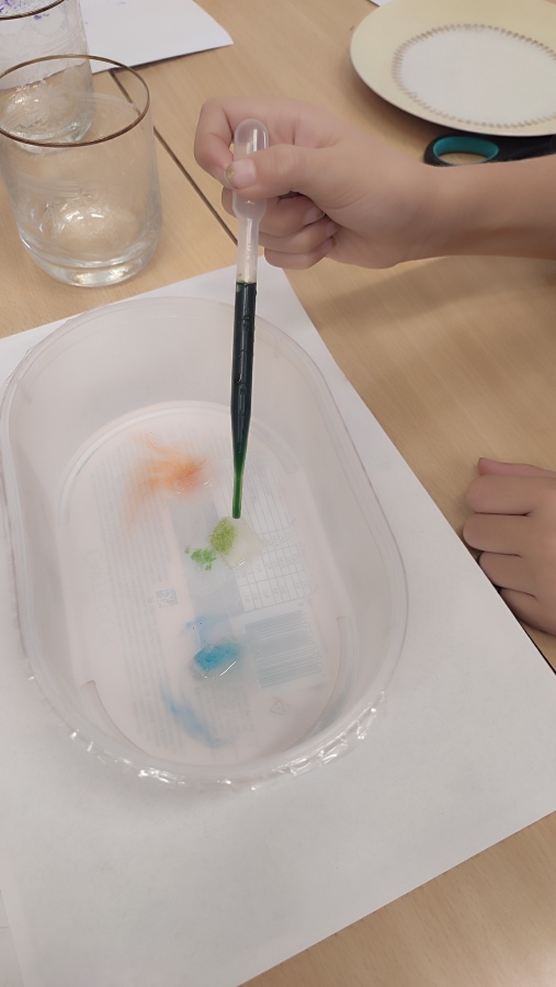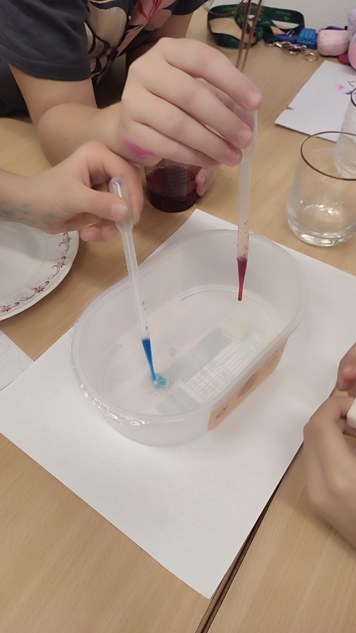 A protože podzim hýří barvami, první listopadové setkání bylo skutečně barevné - dozvěděli jsme se o vzlínavosti vody, rozpouštěli jsme barvy ve vodě a v cukerném roztoku a rozkládali jsme zelenou a oranžovou barvu. Už se těšíme na příští týden a další bádání.