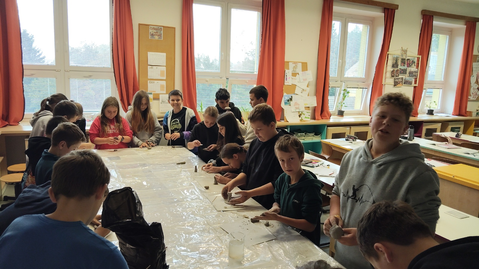 Žáci se věnovali poznávání, sběru a určování hub, ale to nebylo zdaleka všechno. Naučili se také orientovat podle mapy, počítat vzdálenost pomocí provázku, rozlišovat ekosystémy a jejich specifika. Společně jsme zvážili houby před a po usušení a odhady porovnali s reálným výsledkem. Každý si vybral svou oblíbenou houbu, o které jsme vytvořili třídní atlas, a na závěr si ji žáci vymodelovali z hlíny.
