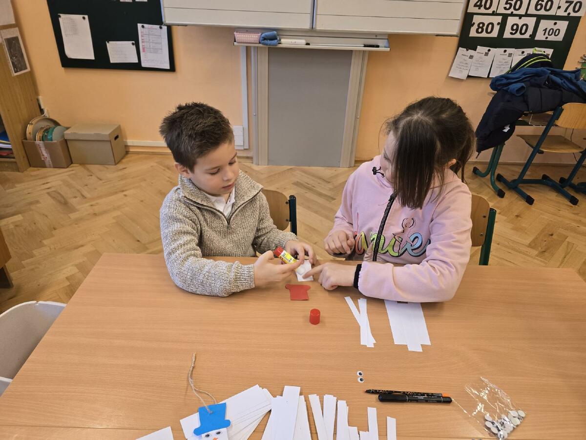 - 3. třída - Děti si v této třídě vyrobily jednoduchého sněhuláka z proužků papíru.