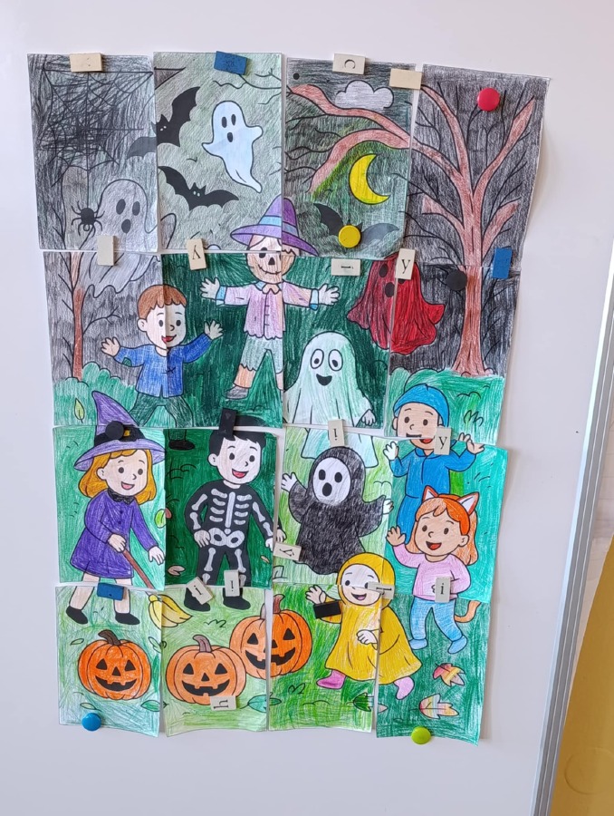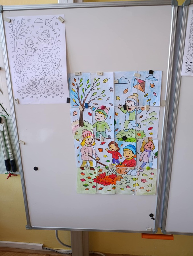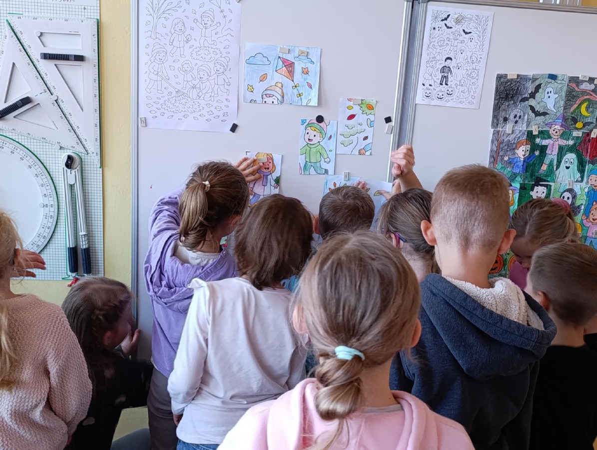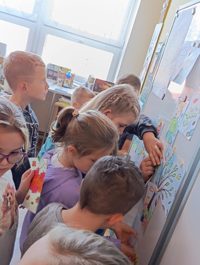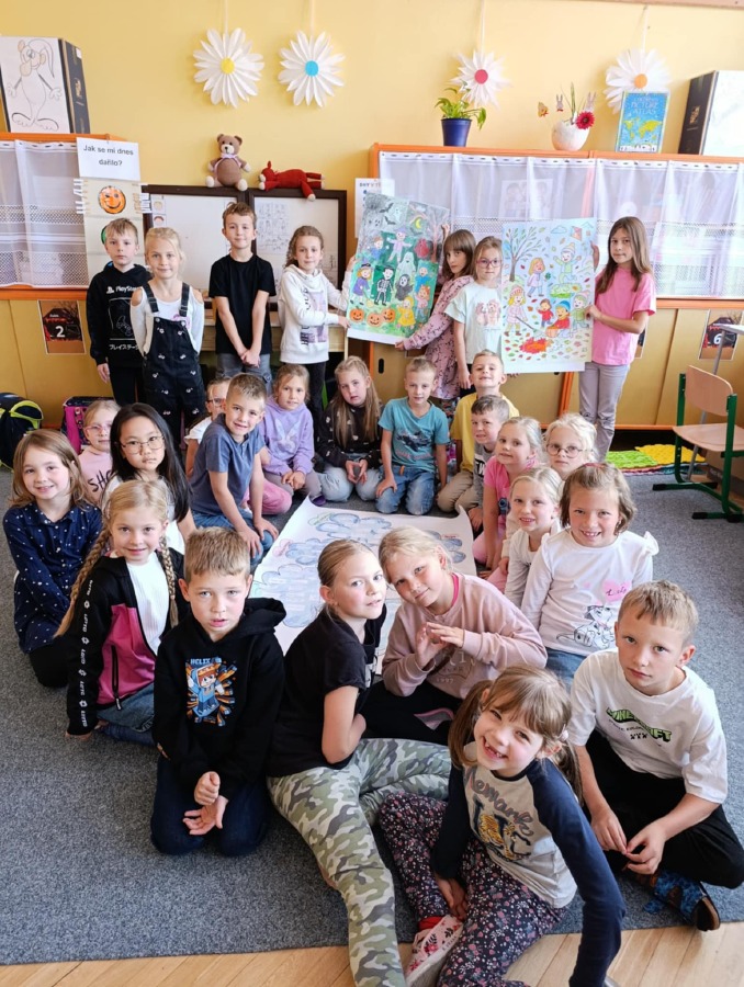 Naše velká myšlenková mapa i obrázky jsou vystavené na společné chodbě