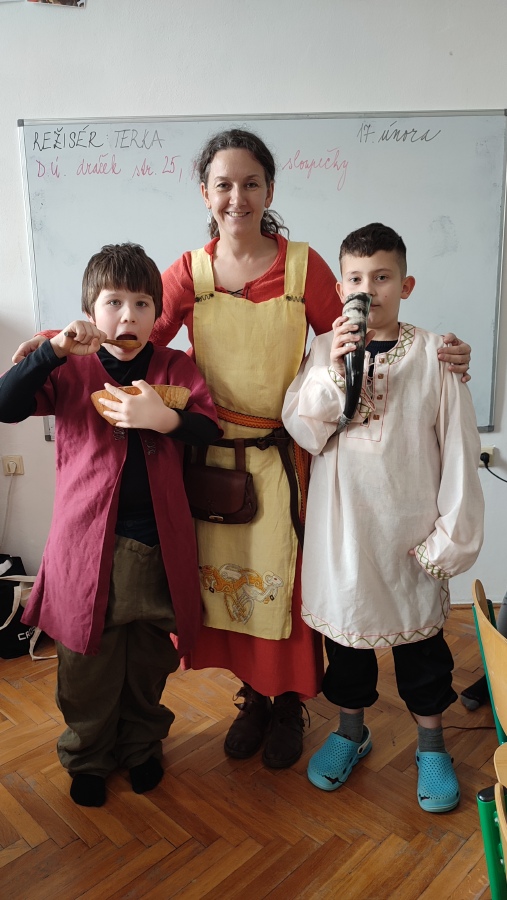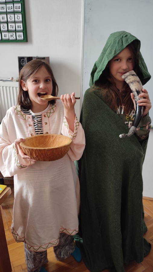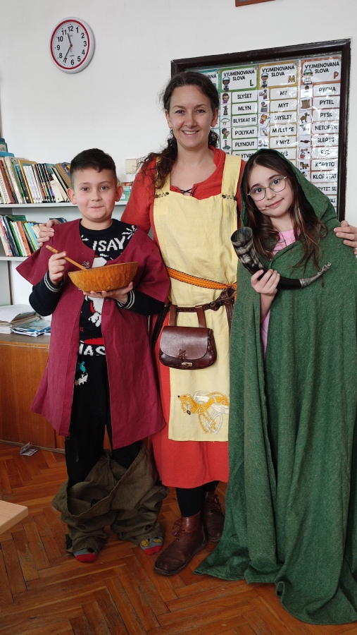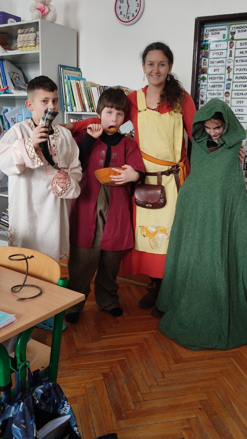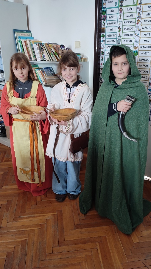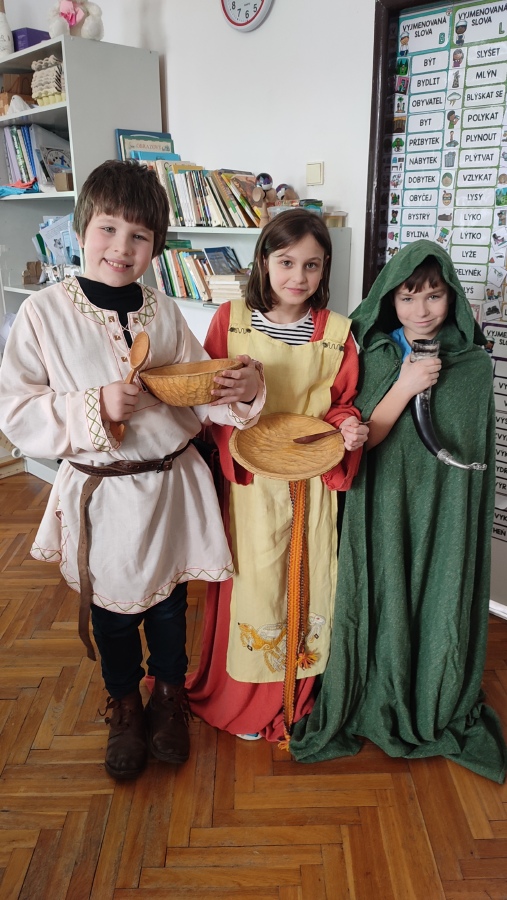 Úterní vlastivěda byla tentokrát s překvapením. Do výuky přišla keltská žena a vyprávěla o tom, jak její kmen slaví slavnost zimního slunovratu.Také jsme zkoumali dobové oblečení, materiál, způsob šití, ruční výrobu kožených bot včetně kožených knoflíků, kování přezky pásku, kovaný náramek, sponu do vlasů z kůže, roh hojnosti na pití, výrobu dřevěného nádobí a vůbec způsob života. Dozvěděli jsme se spoustu informací o řemeslech a tehdejším obchodování s římskou říší.