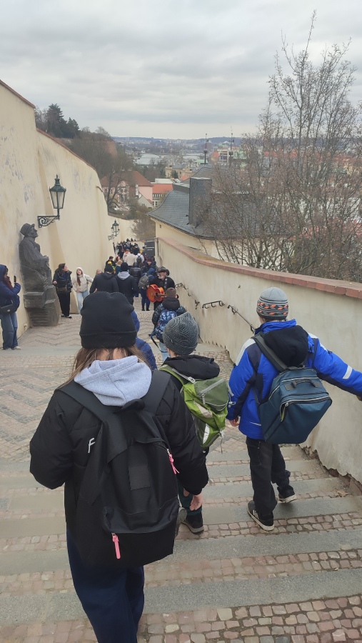 Na poslední části trasy jsme si vychutnali nádherný výhled na celou Prahu a její červené střechy, seběhli jsme po Starých zámeckých schodech na metro, cestou zpět jsme ještě stihli zastávku na Vyšehradě, kde jsme si připomněli pověsti o Libuši, Přemyslu Oráčovi i Horymírovi se Šemíkem. No a než jsme se nadáli, byly dvě hodiny, přijel pro nás autobus a my jsme se unavení, ale obohacení o spoustu poznatků, zážitků a dojmů, vydali na cestů domů.