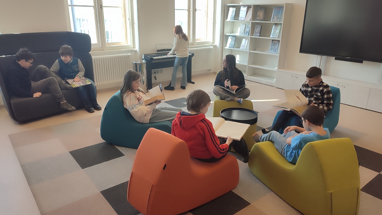 Po představení jsme zamířili do místní knihovny, kde jsme využili čítárnu pro mladé čtenáře. Zahráli jsme si společenské hry, skládali jsme puzzle a samozřejmě si prolistovali spoustu nových a zajímavých knížek.