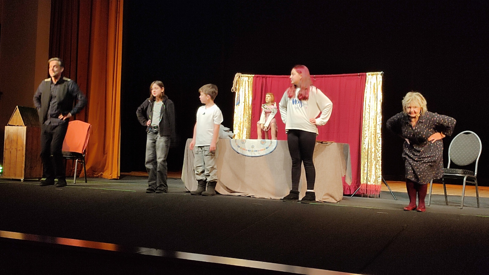 Pak už jsme rychle zamířili do divadla, pozdravili jsme paní šatnářku, odložili kabáty a pohodlně jsme se usadili do hlediště.