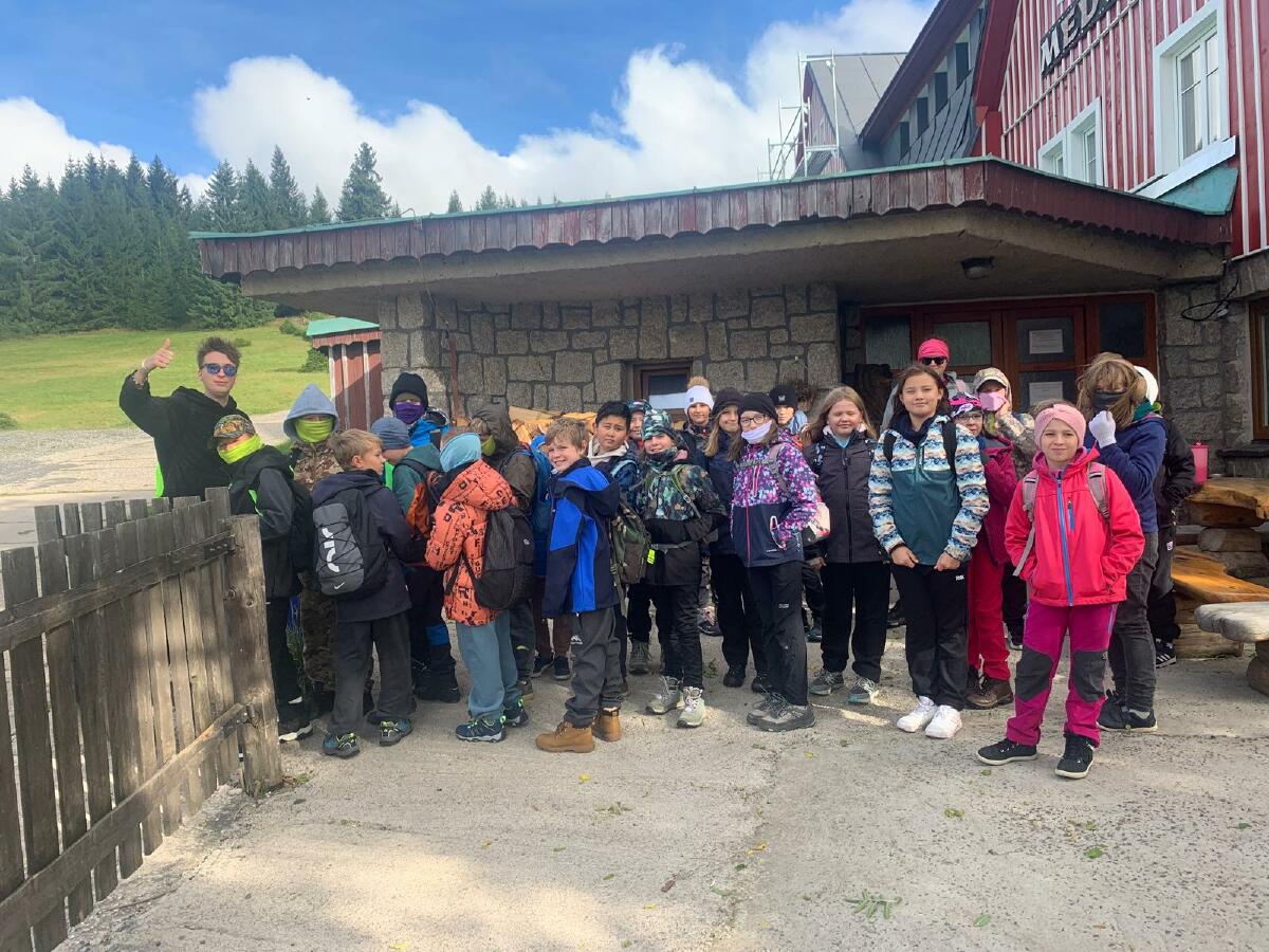 Jeden ze zářijových týdnů strávili páťáci na Škole v přírodě. Navštívili jsme Krkonošský národní park a celý týden jsme byli ubytováni na horské chatě Medvědí bouda.