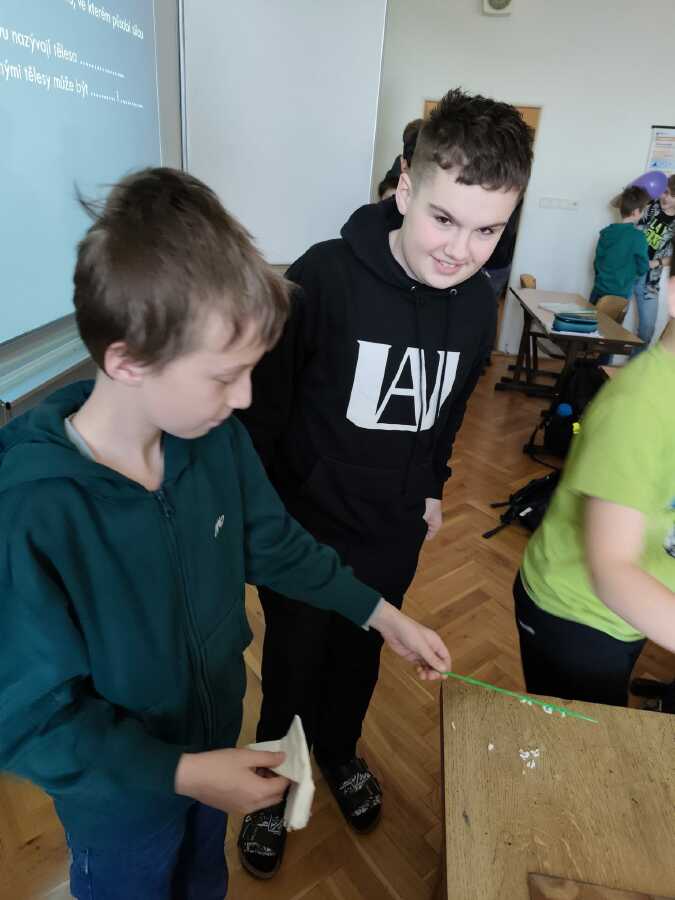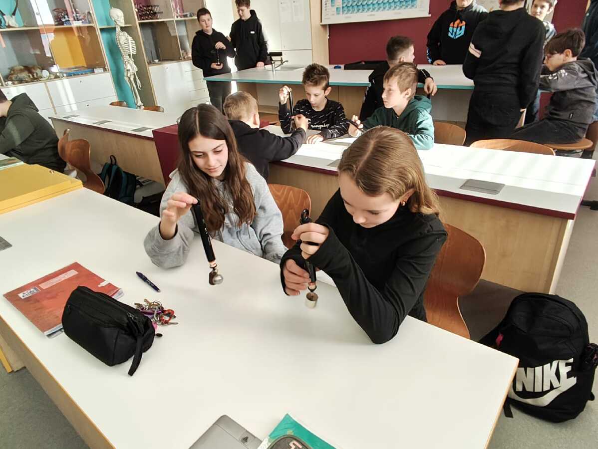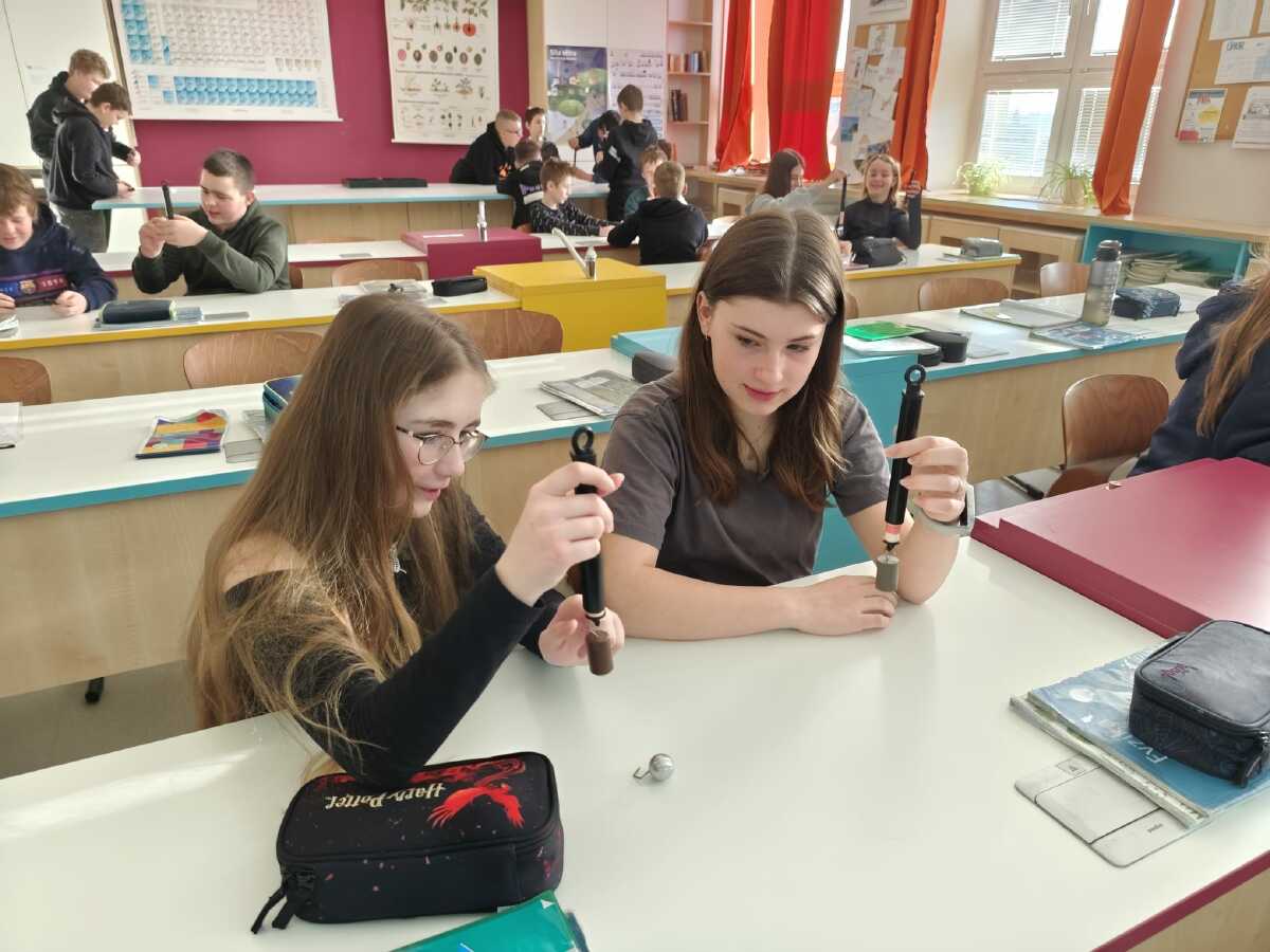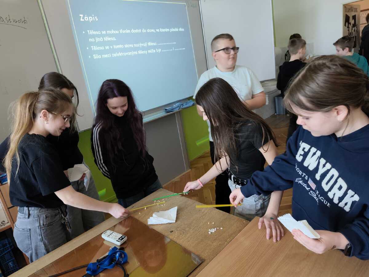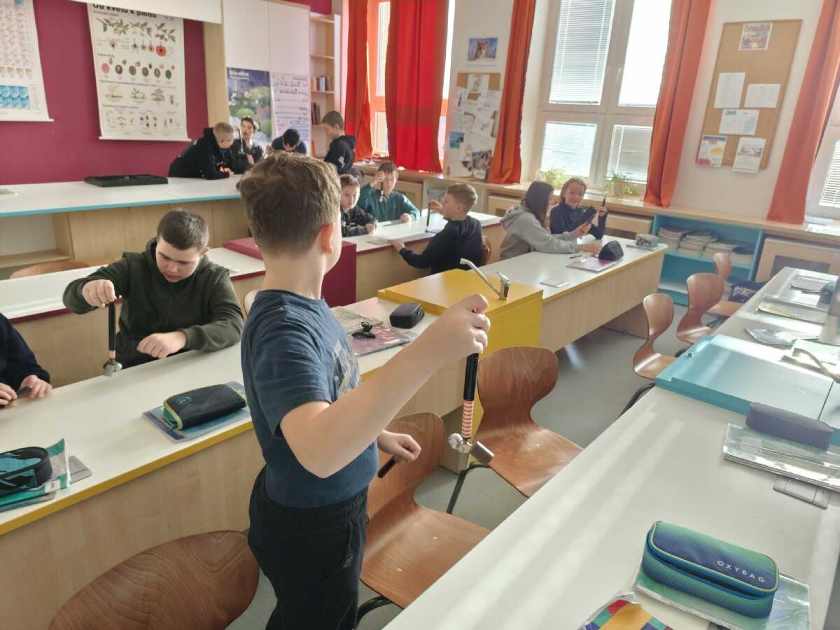 Jak vypadají některé naše vyučovací hodiny? Rozhodně tu jen nesedíme a neposloucháme výklad. Naopak - sami si aktivně spoustu věcí zkoušíme, pod vedením vyučujících objevujeme nové souvislosti a také smysluplně pracujeme s moderními technologiemi. Podívejte se na pár fotek z hodin fyziky a dějepisu.