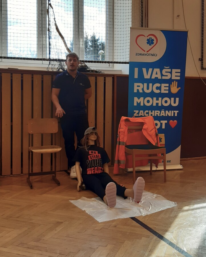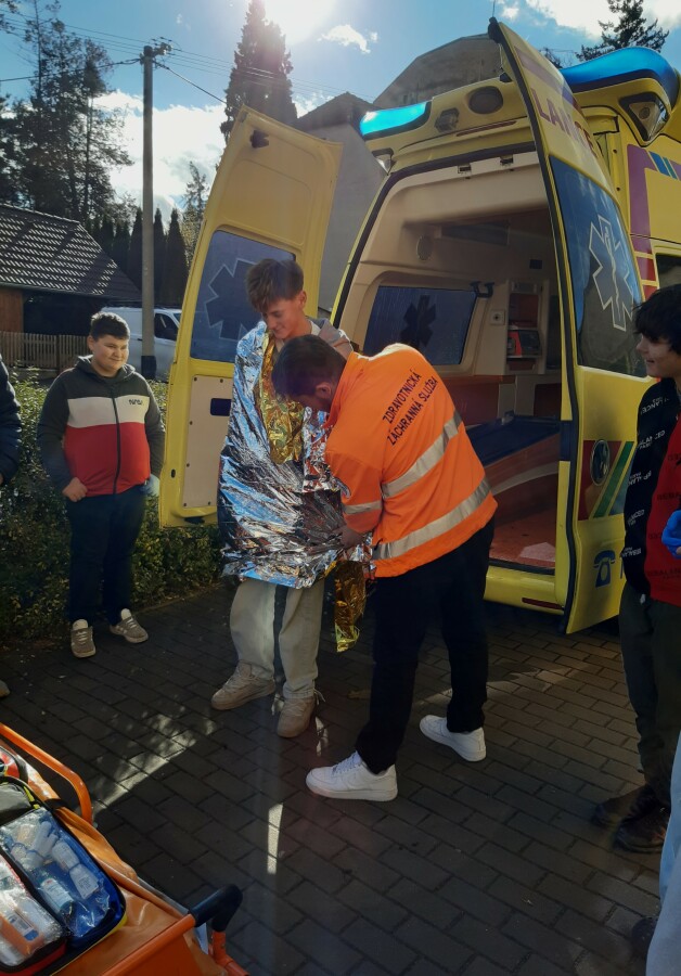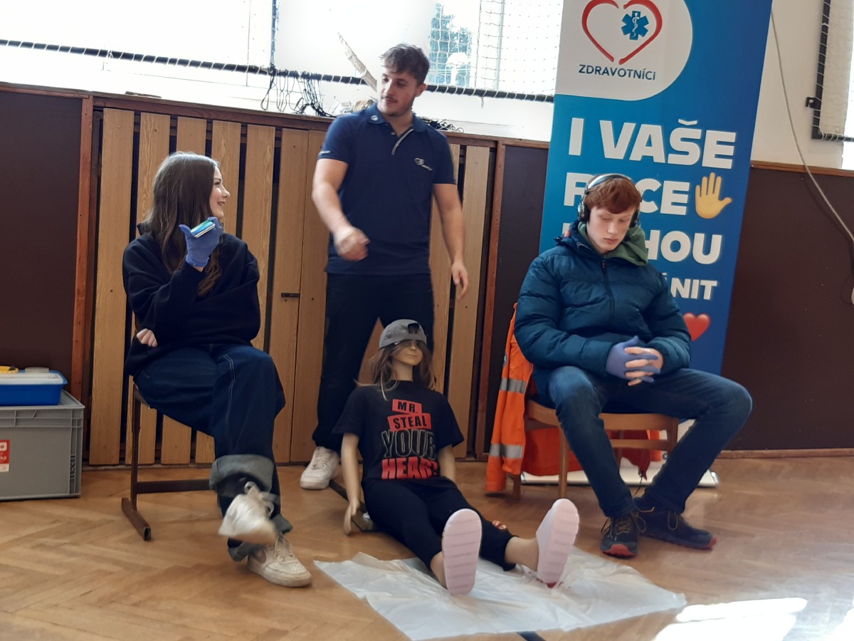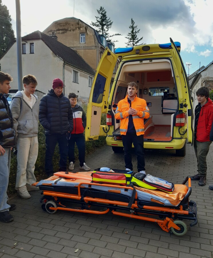 Naši žáci se zúčastnili dvouhodinového vzdělávacího programu Mladý záchranář. První hodina byla věnována teorii – dozvěděli se, jak správně reagovat v krizových situacích, jak přivolat pomoc a jak poskytnout první pomoc. Ve druhé části si své znalosti ověřili v praxi přímo u sanitky, kde si mohli vyzkoušet základní záchranářské úkony.