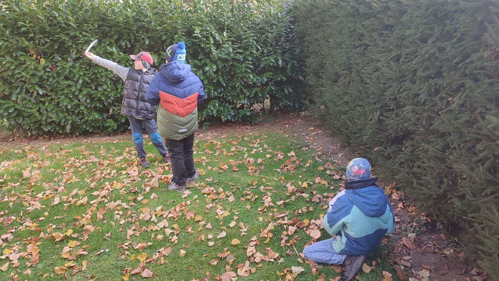 Úvodní setkání jsme věnovali seznamování a hraní přírodovědných her. Na začátku října nás vytáhlo sluníčko ven a my jsme vyrazili prozkoumat houby v okolí školy. Úlovek byl parádní. V polovině října jsme se vydali na školní zahradu a vyřešili jsme záhadu mizejícího listí. Děti v rolích detektivů vyslýchaly svědky, pátraly po stopách a důkazech a nakonec vyřešily podzimní záhadu. K tomu jsme ještě na školní zahradě nasbírali jablka na vynikající křížaly.